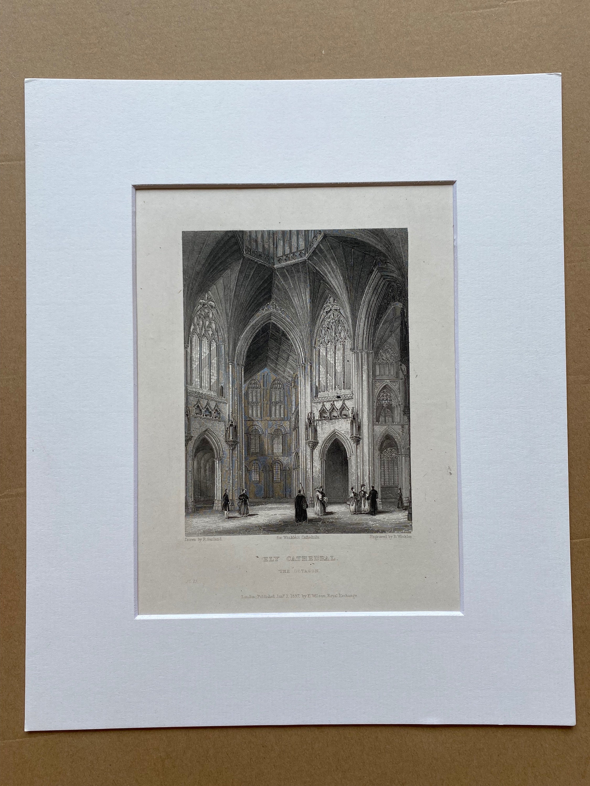 1838 Ely Cathedral - The Octagon Original Antique Engraving - Architecture - Mounted and Matted - Available Framed