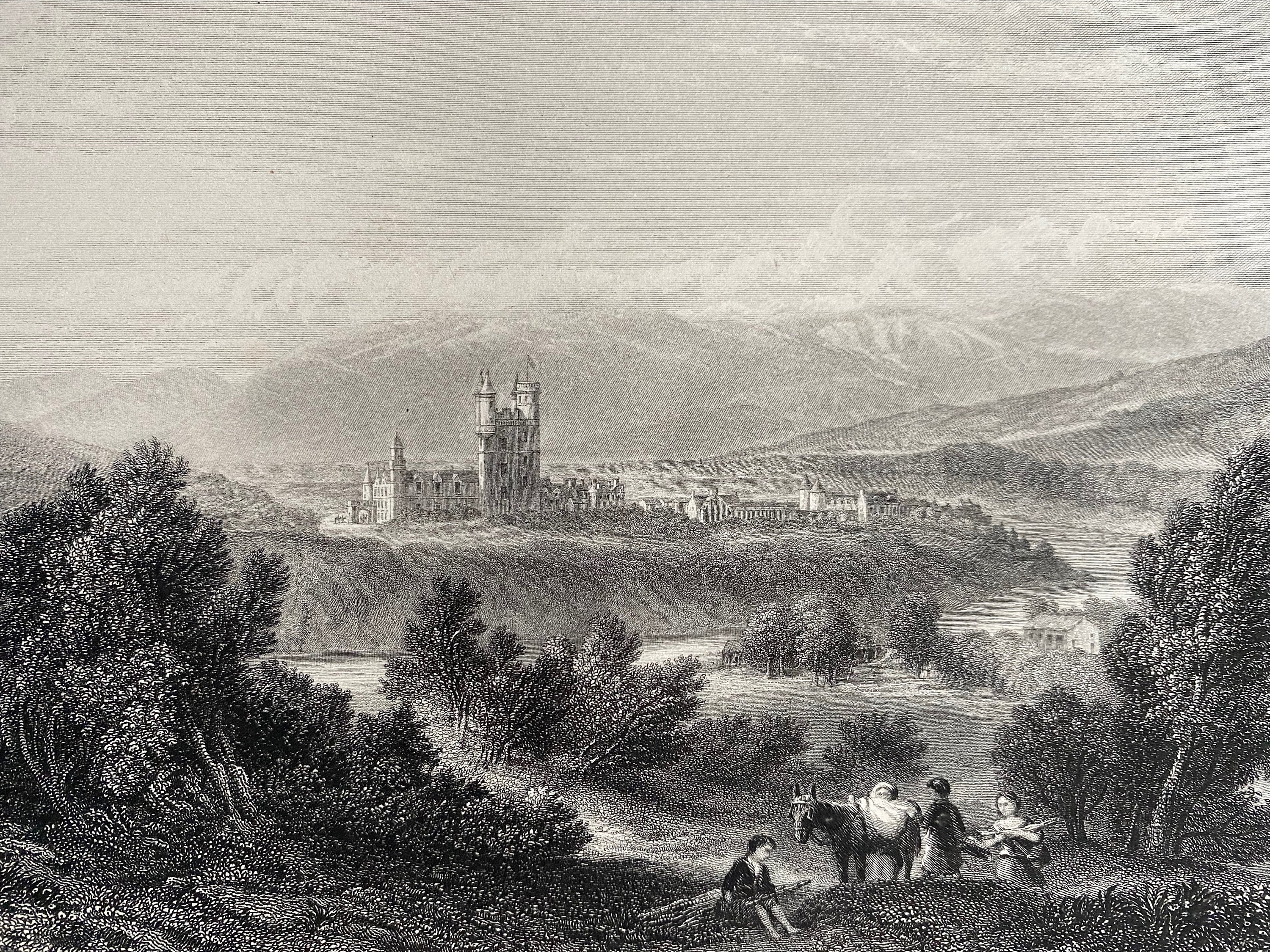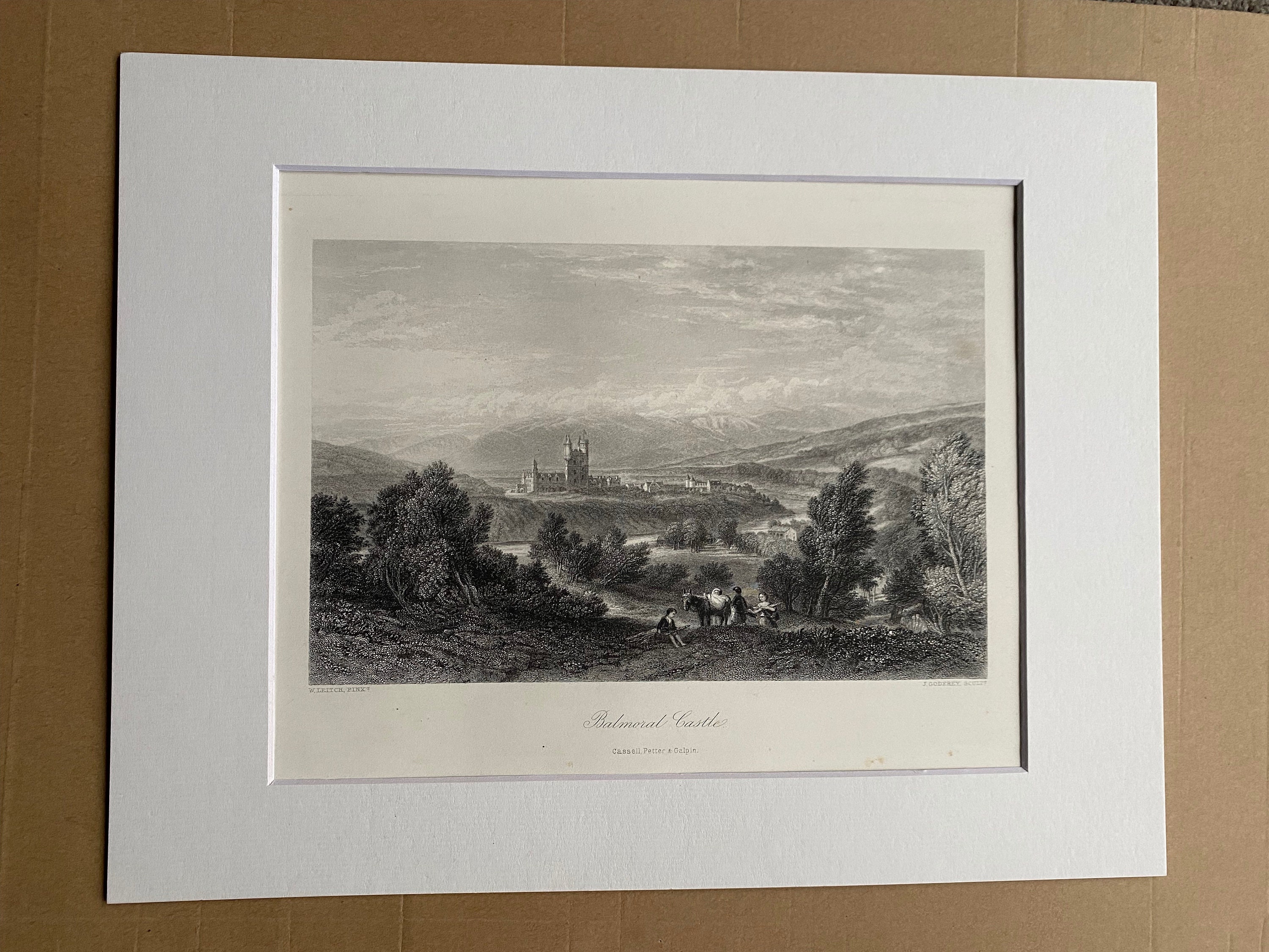 1876 Balmoral Castle Original Antique Steel Engraving - Mounted and Matted - Scotland - Aberdeenshire - Available Framed