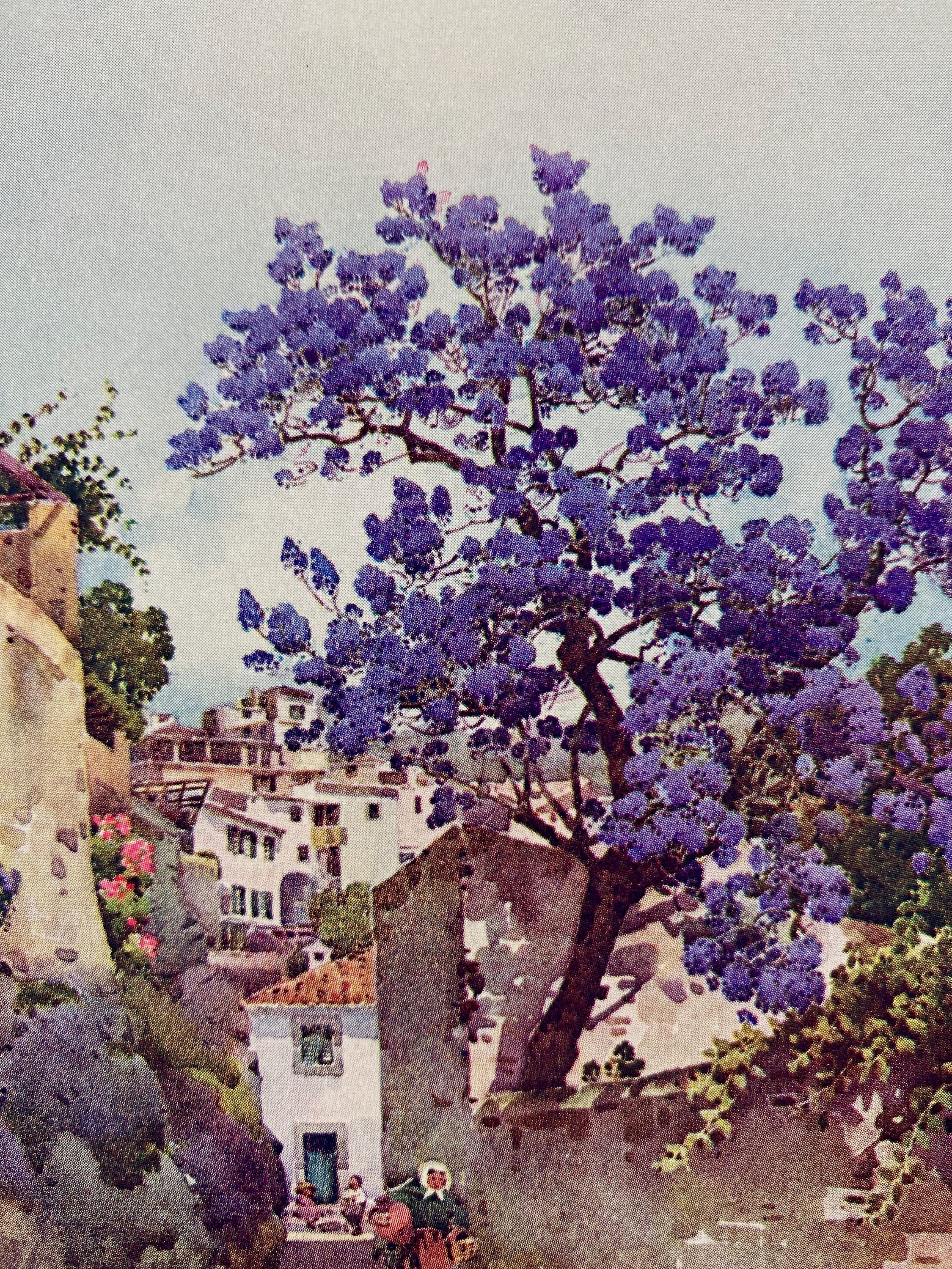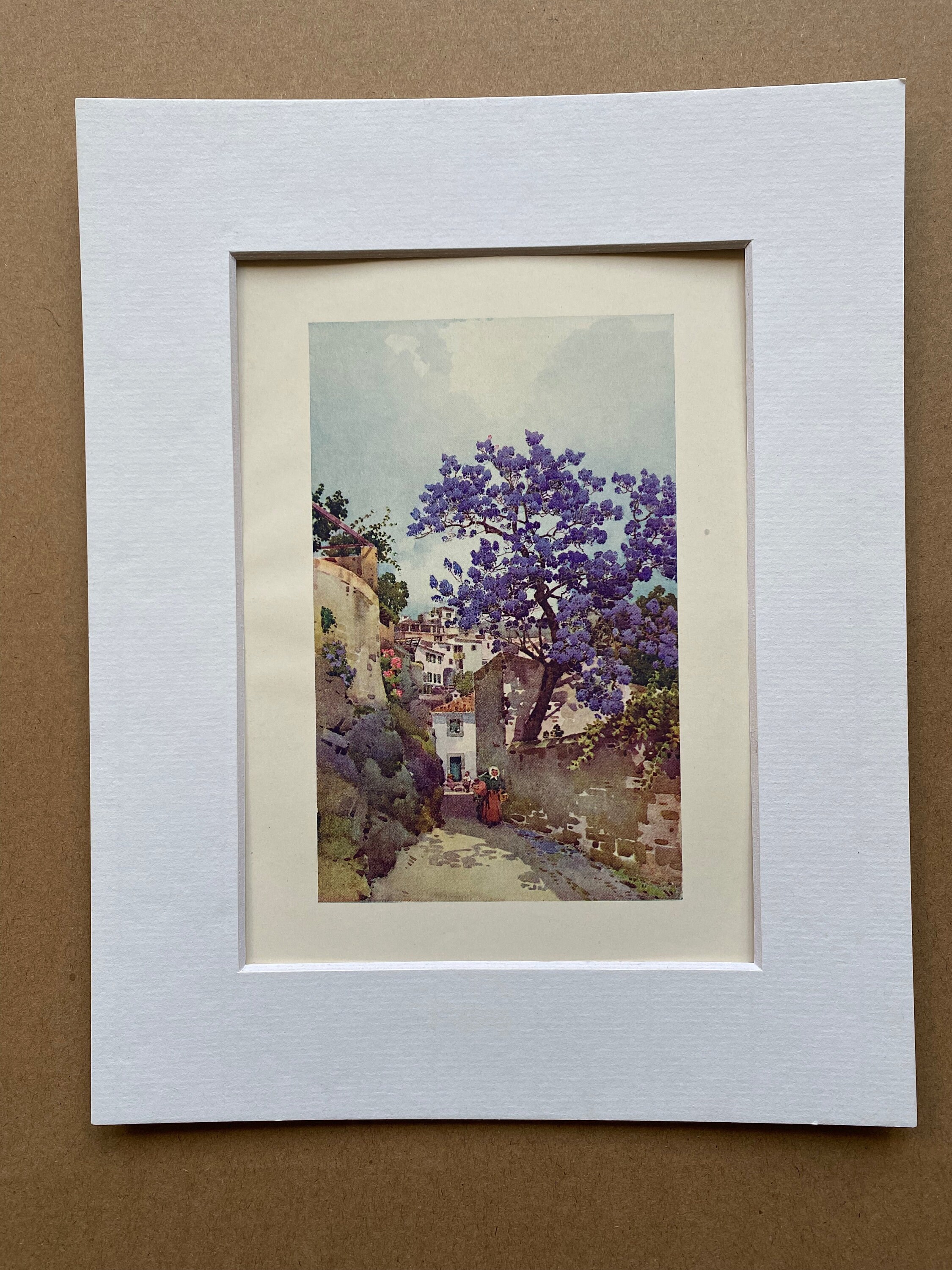 1909 Madeira - Jackaranda Tree Original Antique Print - Botanical Art - Flower - Garden - Mounted and Matted - Available Framed