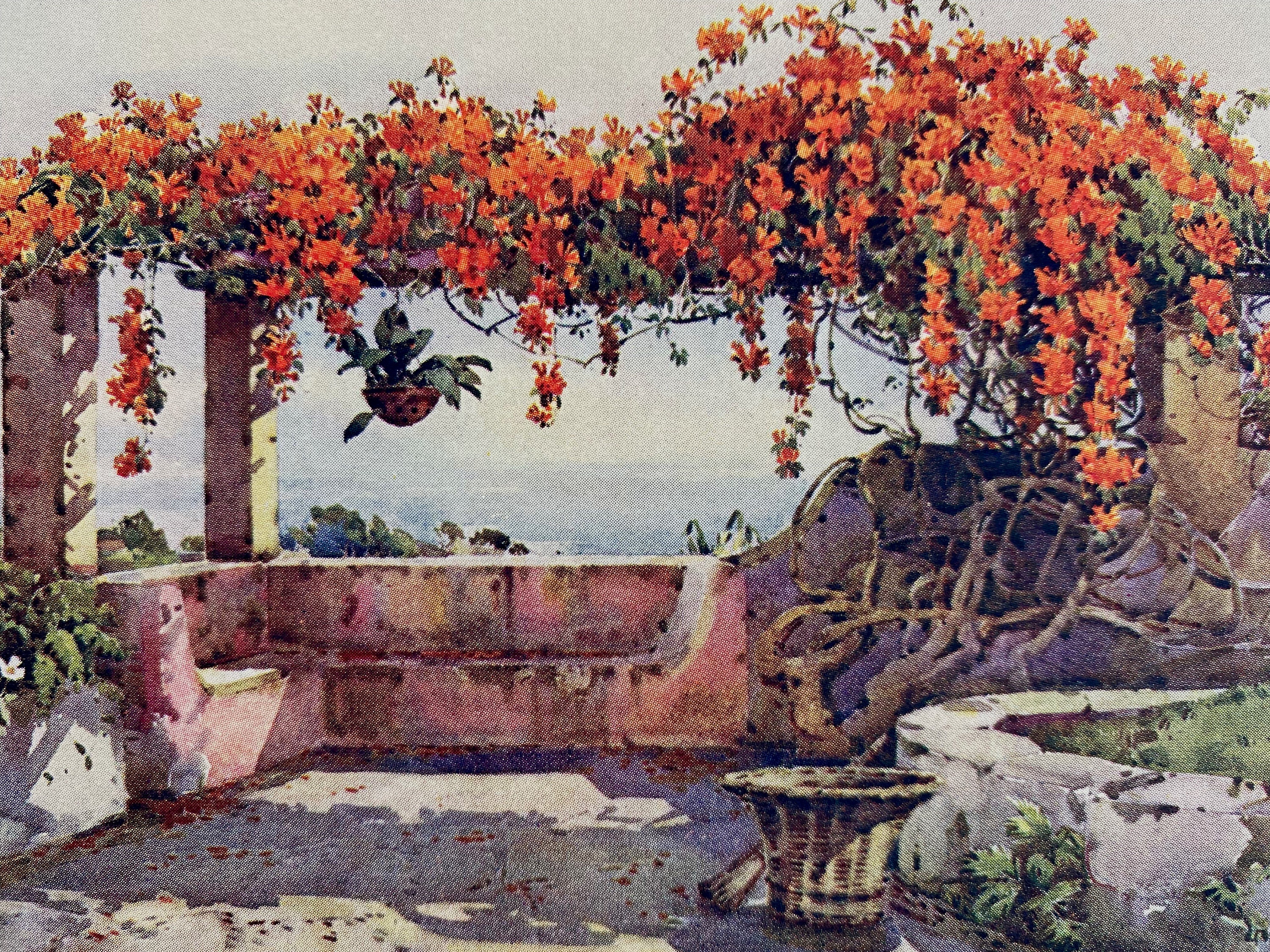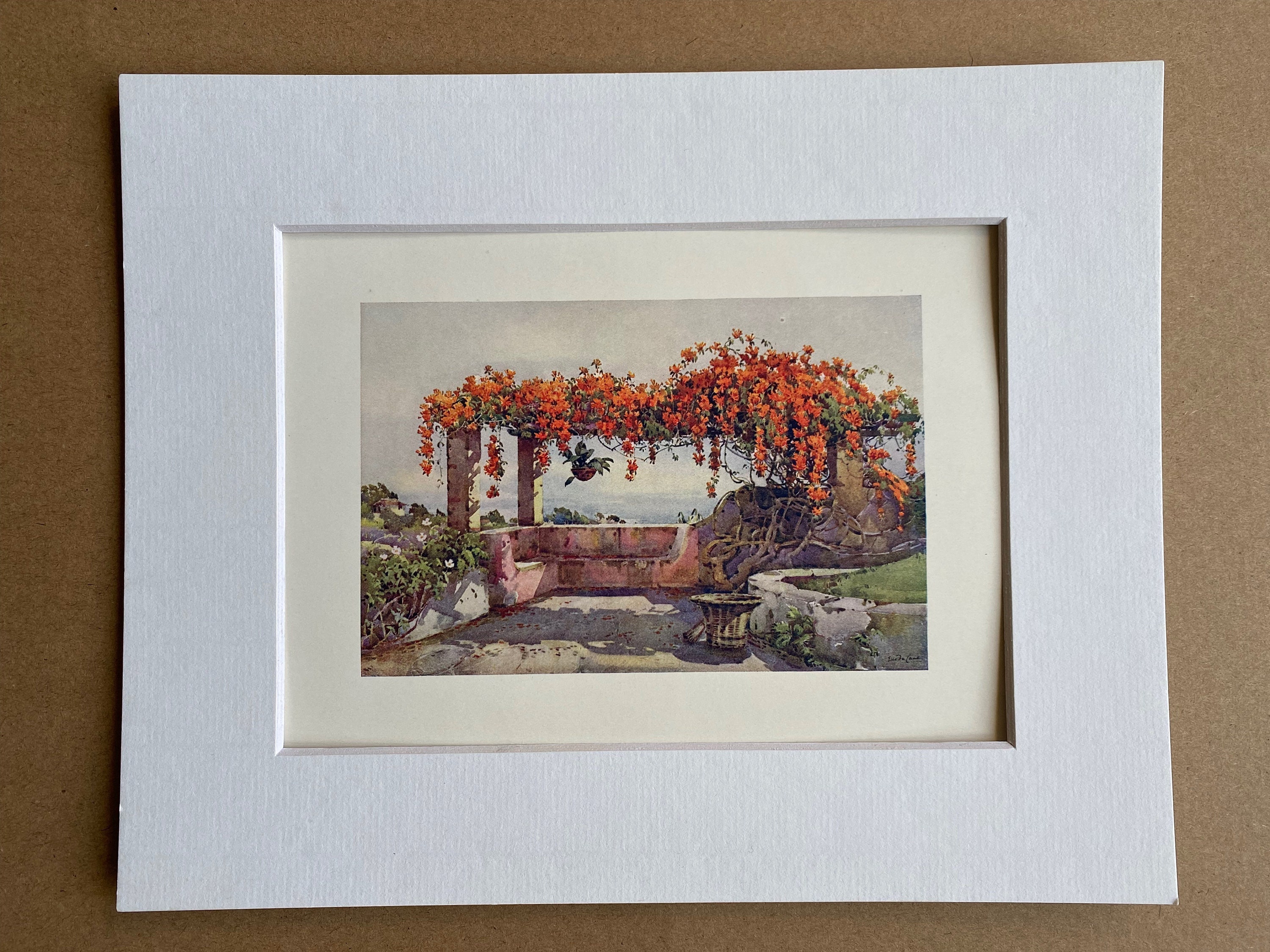 1909 Madeira - Bignonia Venusta Original Antique Print - Botanical Art - Flower - Garden - Mounted and Matted - Available Framed