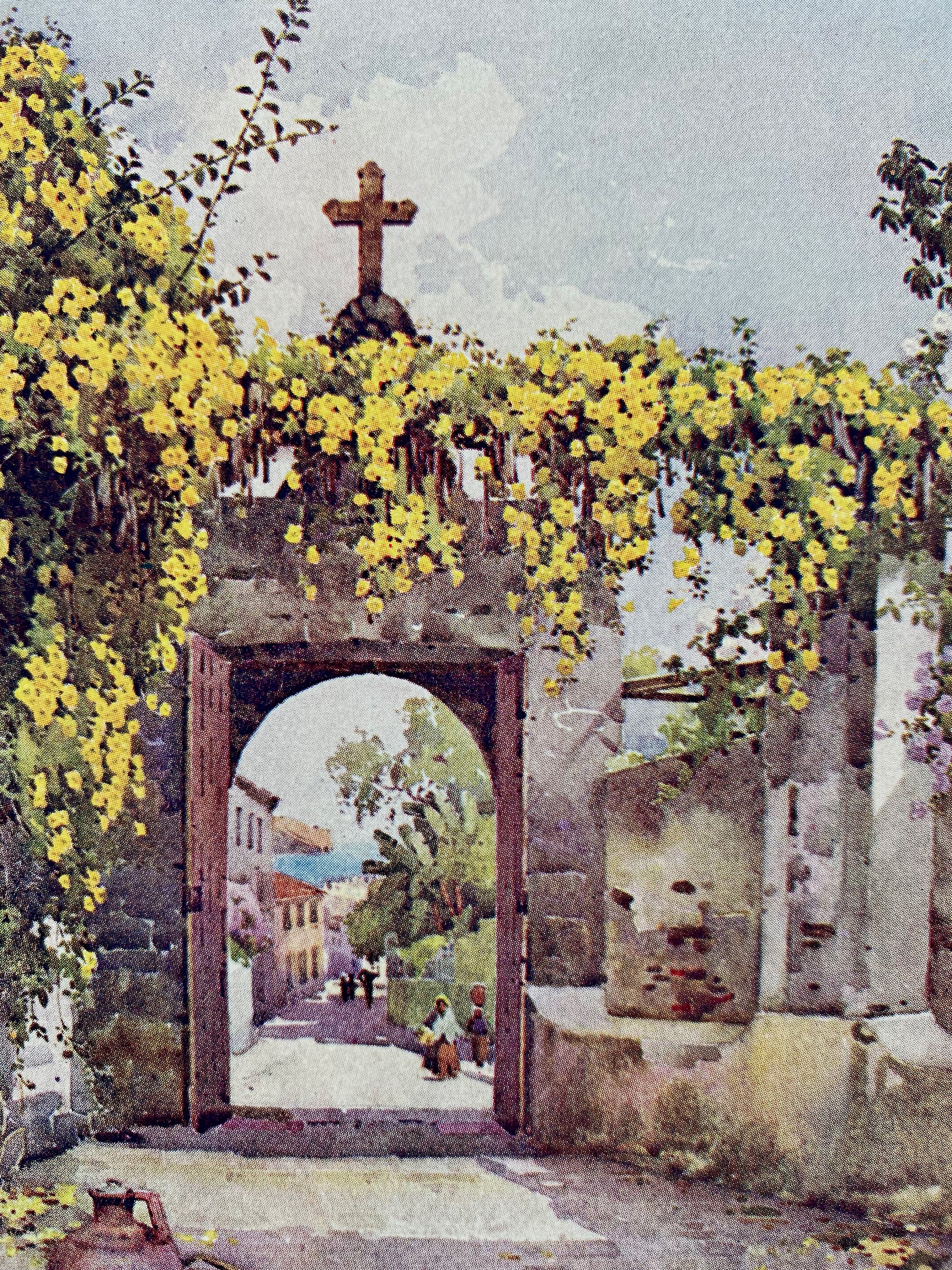 1909 Madeira - A Chapel Doorway Original Antique Print - Botanical Art - Flower - Garden - Mounted and Matted - Available Framed