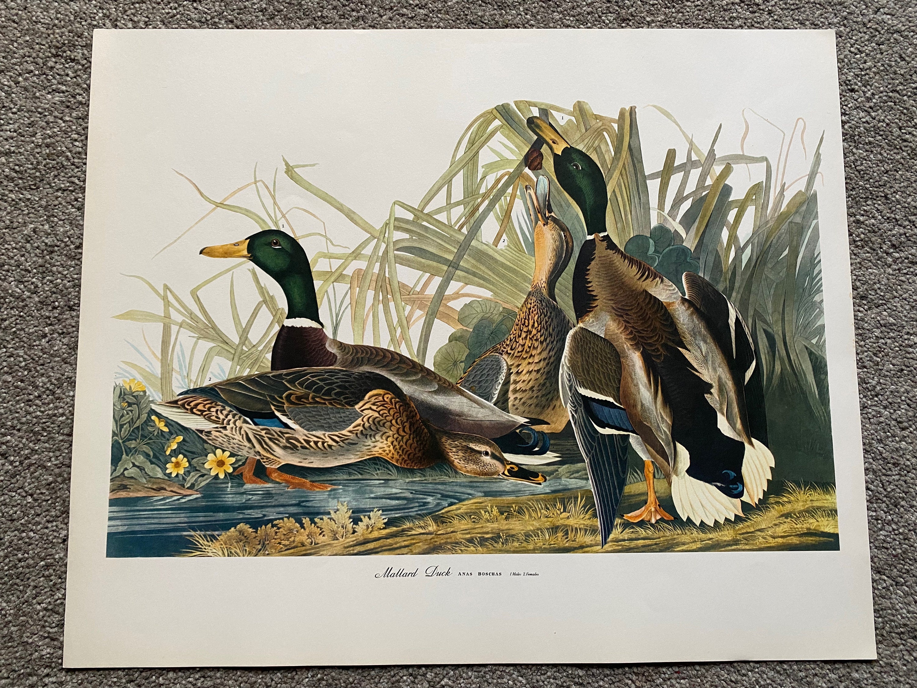 This is an original large vintage folio print from 1964, not a reproduction or modern copy. It is a reproduction of one of Audubon's paintings from the 19th Century. John James Audubon was a renowned American ornithologist, naturalist and painter who lived from 1785 - 1851.