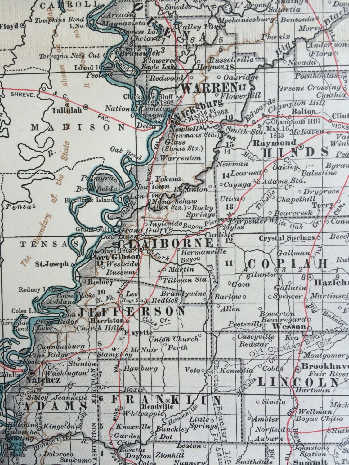 For more antique maps of Mississippi click here: https://www.etsy.com/uk/shop/NinskaPrints?ref=hdr_shop_menu&search_query=mississippi