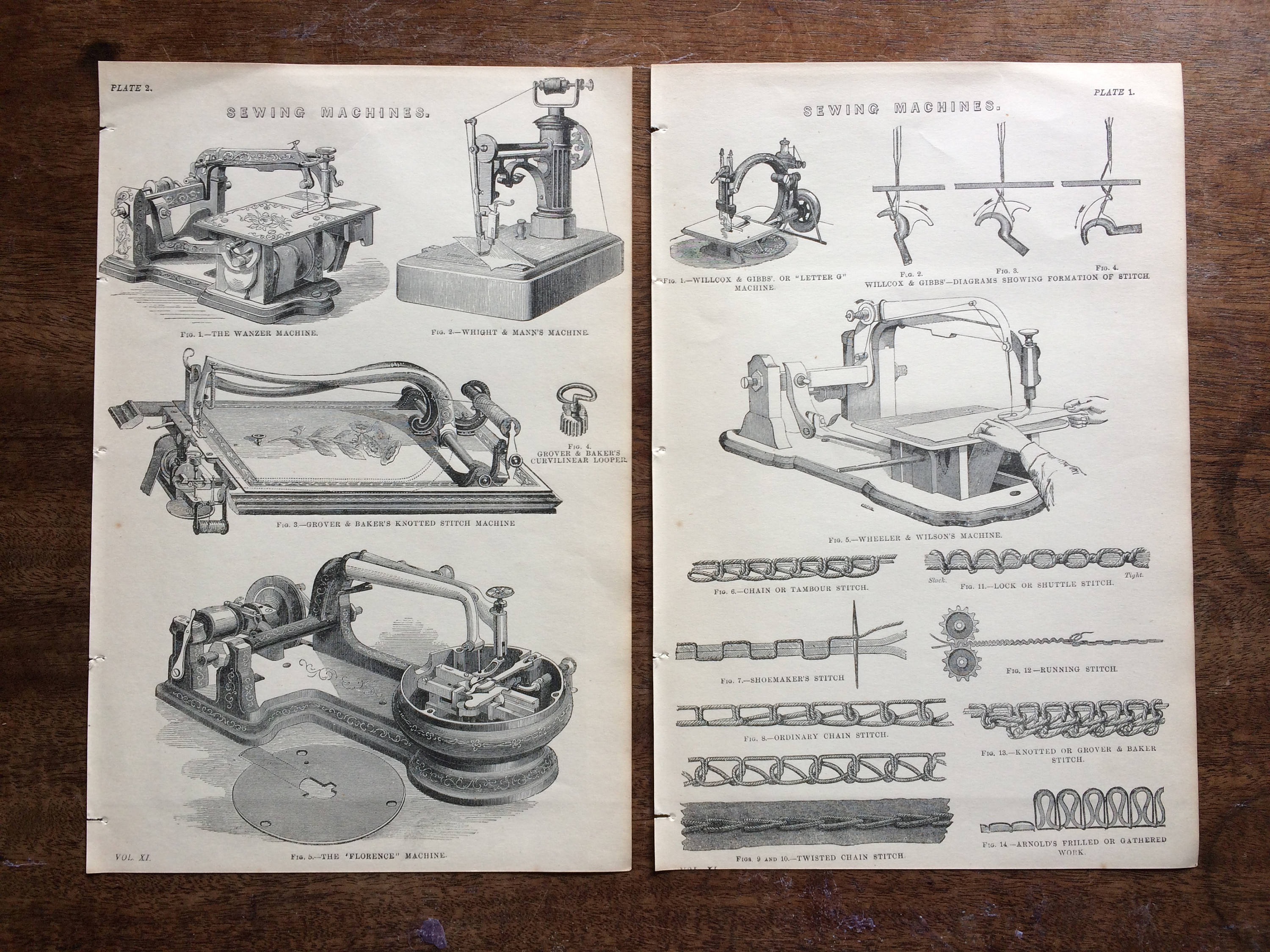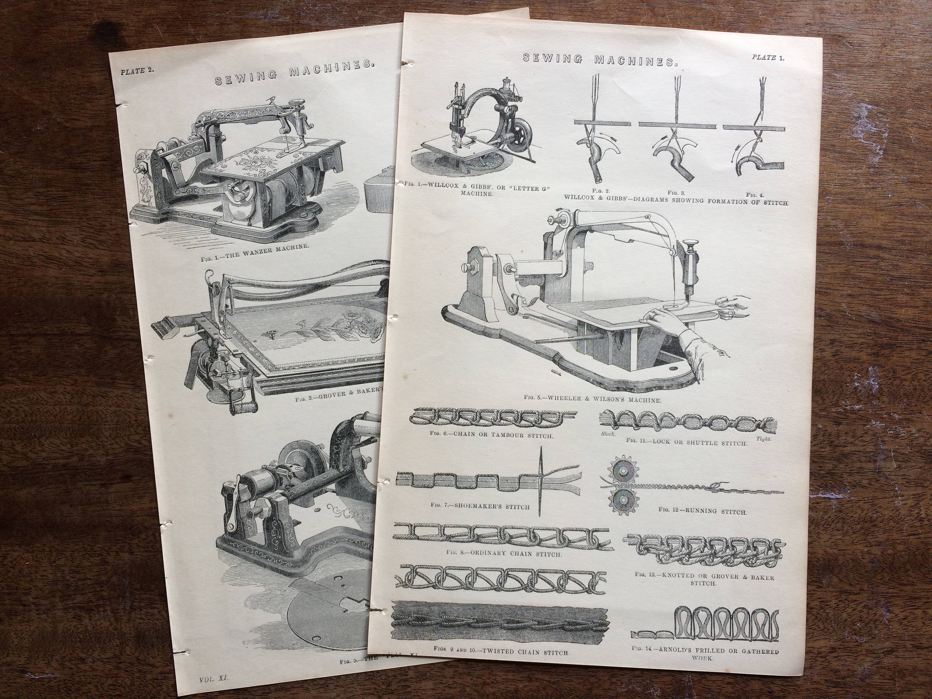 1880 Sewing Machines Original Antique Steel Engraving Set - Haberdashery - Sewing - Embroidery - Crafts - Gift for Sewer - Victorian Decor