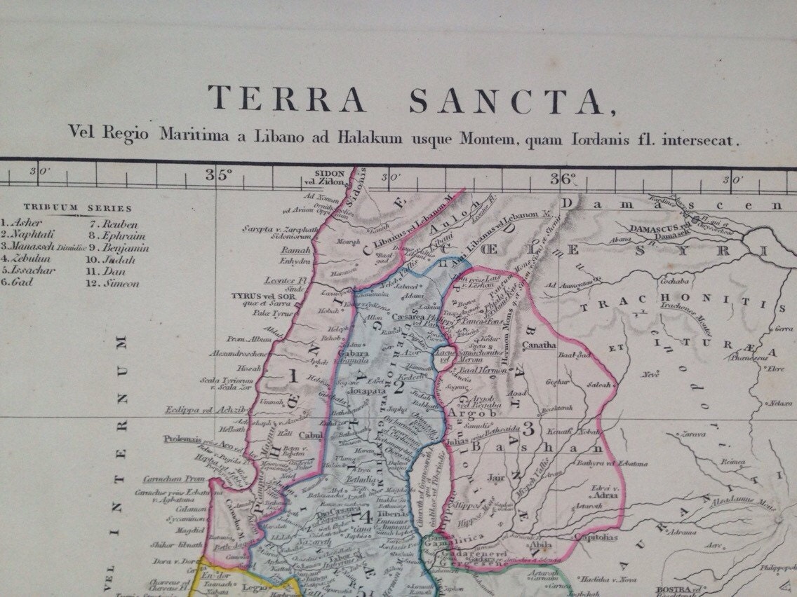 It is taken from the Eton College Ancient Atlas published in 1865. Given the age of our maps and prints they will sometimes have slight markings or foxing but this and any tears will be clear from the photos. Generally they are in excellent condition for their age. If you have any questions about the condition about a particular print or map please do contact us and we'll send more detailed photos.