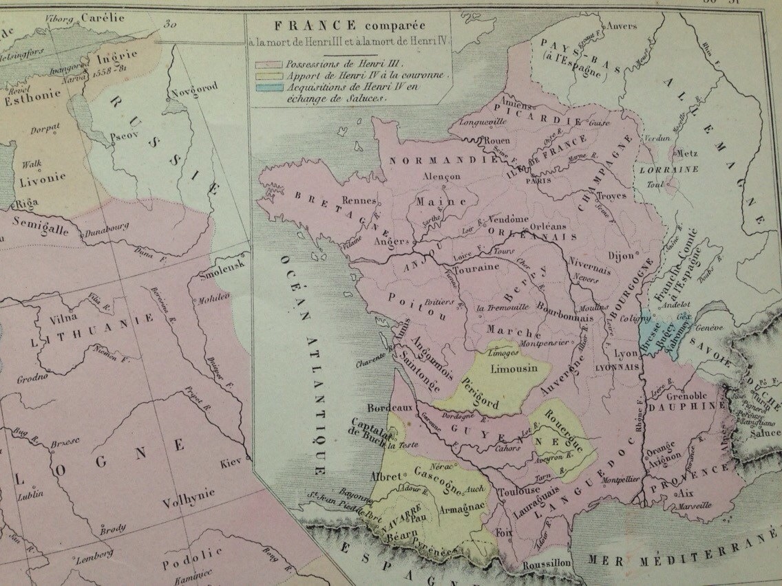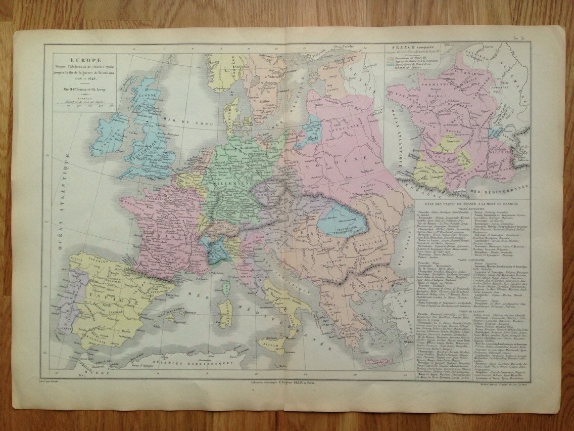 This is an original antique map, not a reproduction or modern copy. It is in excellent condition for its age. All of our maps have slight markings and foxing due to their age but this will always be clear from the listing photos. This map is from a French Atlas so the descriptions and country names are in French.