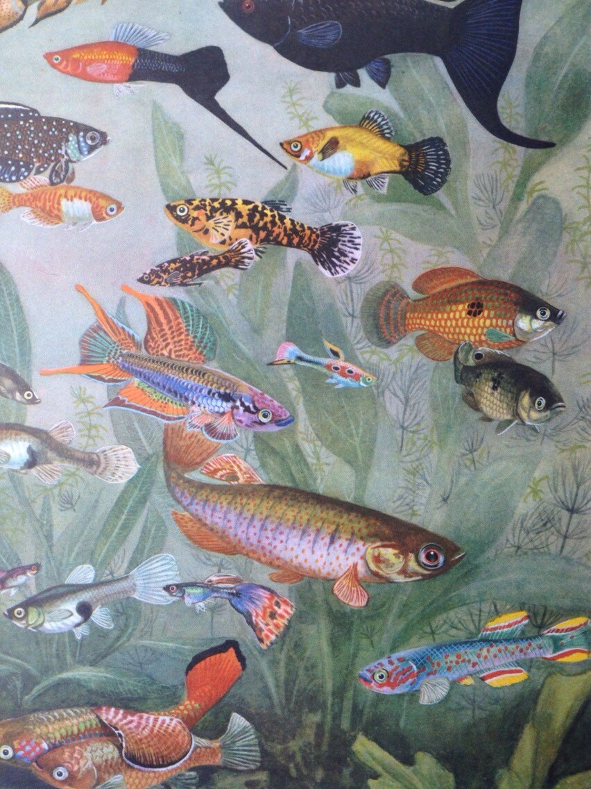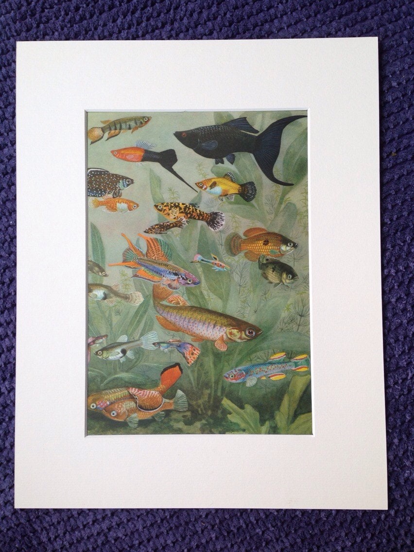 This print is in excellent condition and it comes mounted, matted and ready to frame in a standard-sized frame. The page from the encyclopaedia with the latin names of the fish pictured will be included with your order.