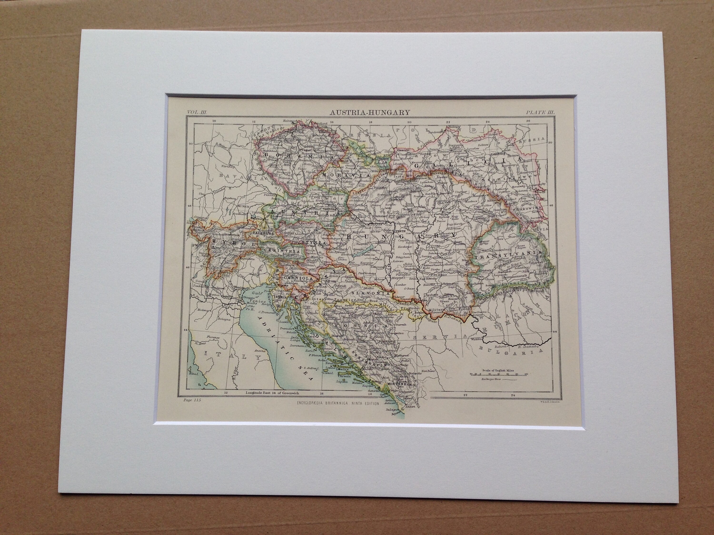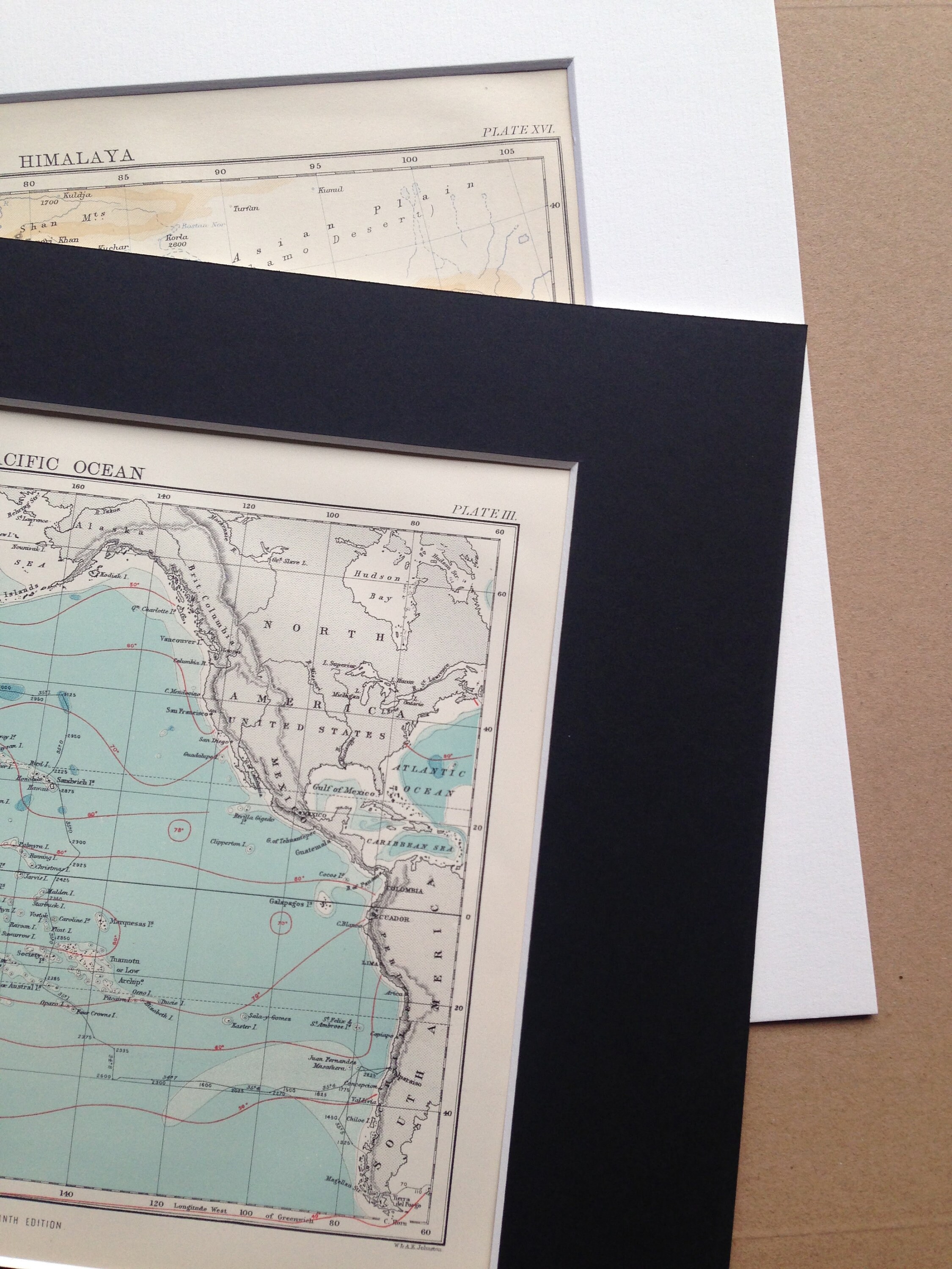 This map is available mounted, matted in antique white or black and is also available framed. We use archival matting methods so your map will be held in place with photo corners and will not be fixed to either the mat or the backing board.