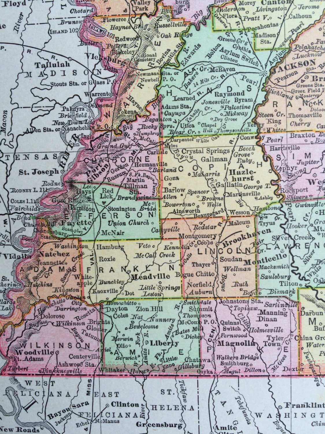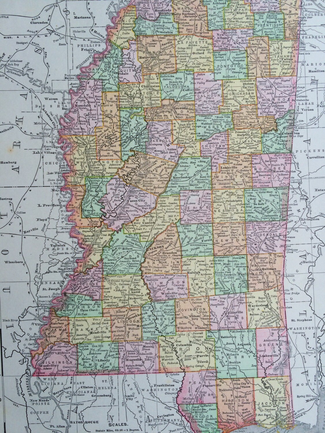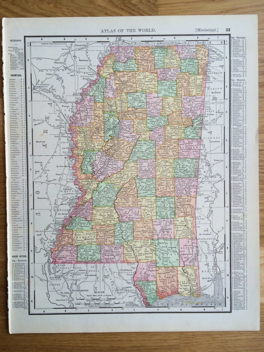 1898 MISSISSIPPI Original Antique Map, 11 x 14 inches, Rand McNally, Home Decor, Cartography, Geography, Vintage Decor, US State Map