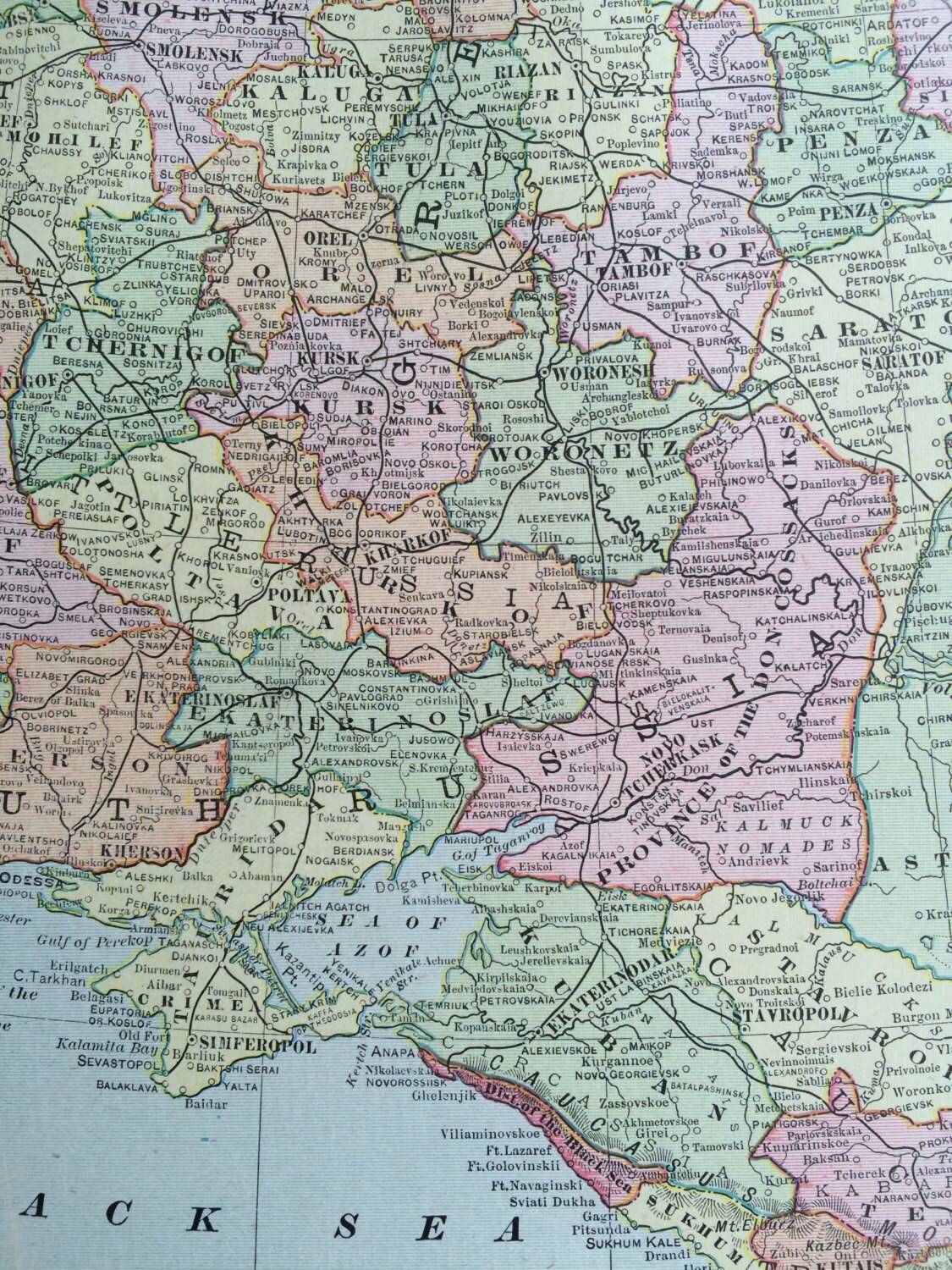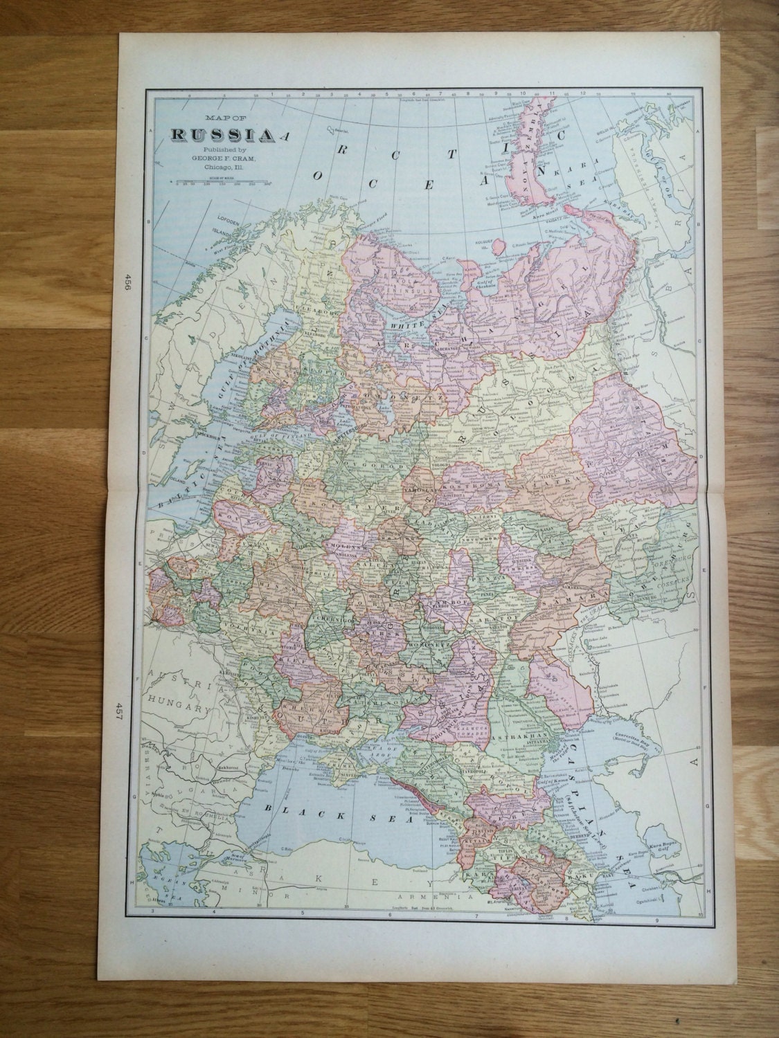 1901 RUSSIA Large Original Antique Map, 22.5 x 14.5 inches, Home Decor, Cartography, Geography, Vintage Decor