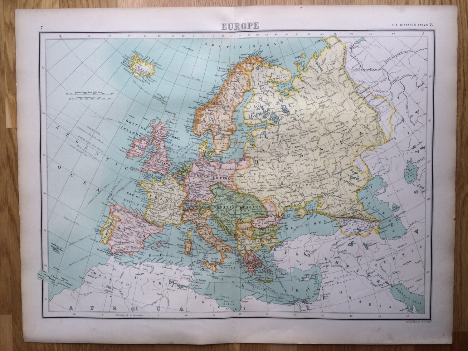 It is taken from an edition of John Bartholomew's Citizen's Atlas of the World that was published in 1898. John George Bartholomew was a renowned British Cartographer and Geographer who published several atlas' in the late 19th Century. He is best known for naming the continent of Antarctica in 1890.