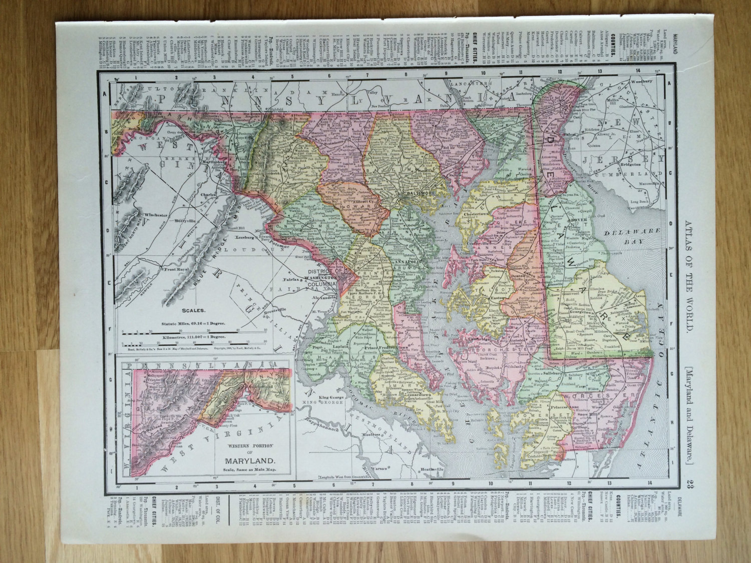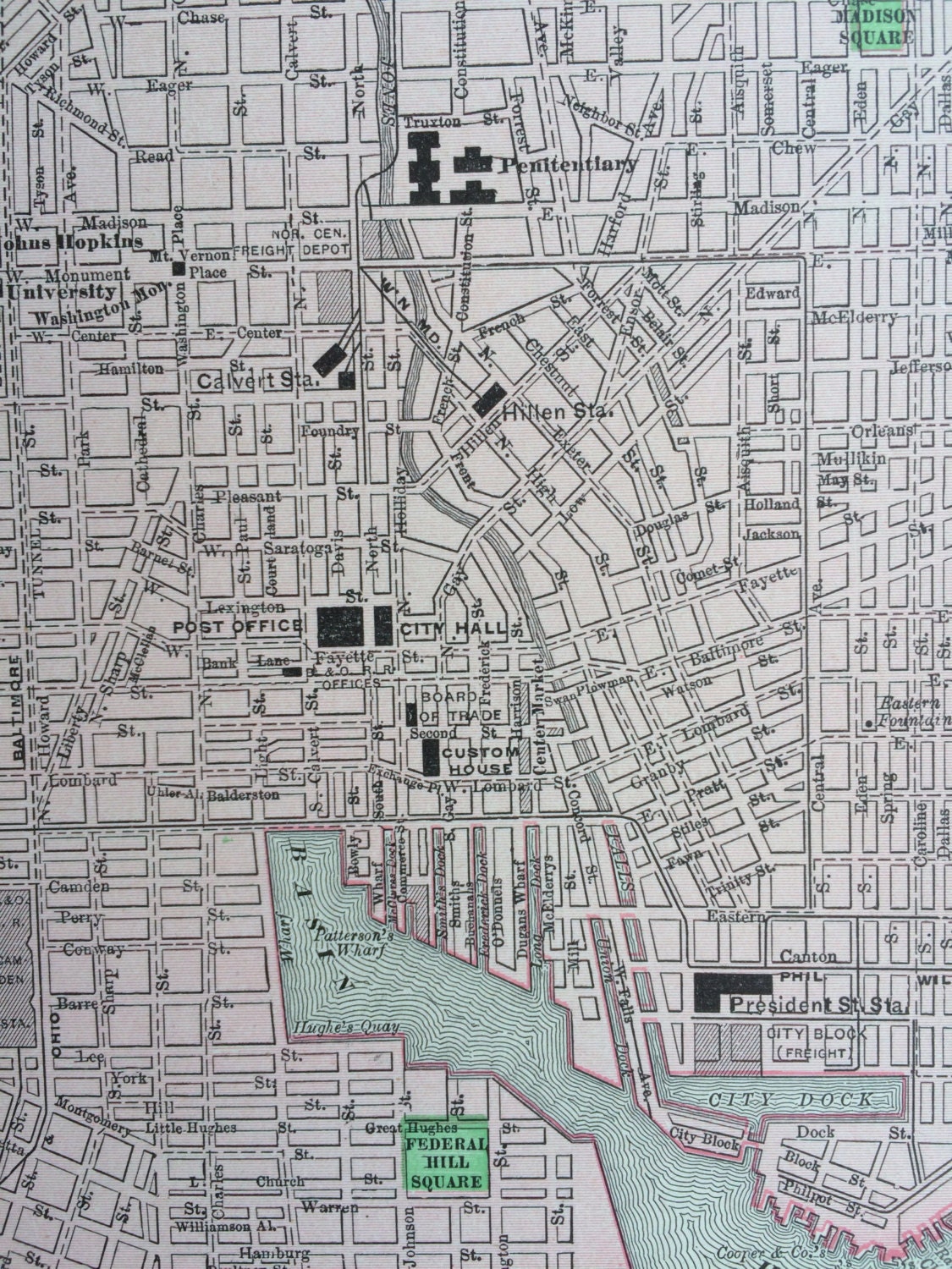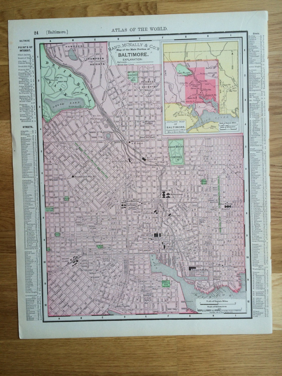 1898 BALTIMORE Original Antique City Plan Map, 11 x 14 inches, Rand McNally, Home Decor, Cartography, Geography, Vintage Decor
