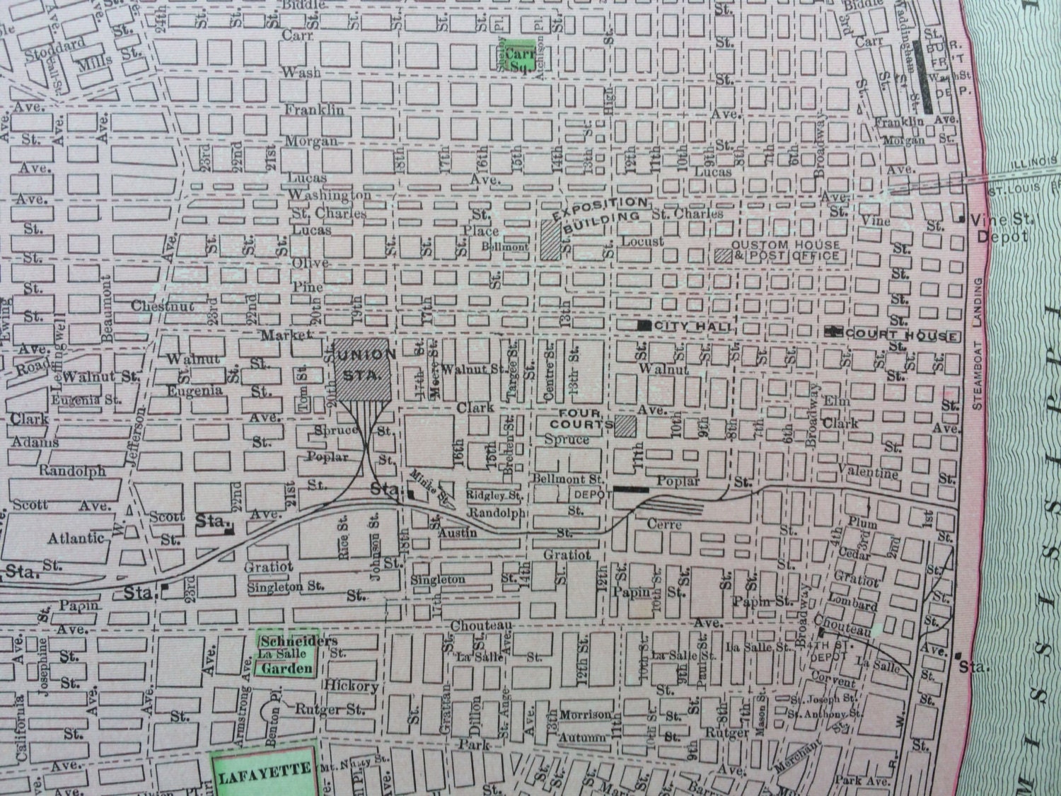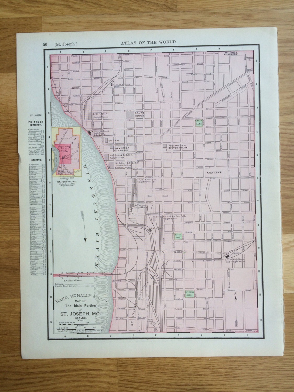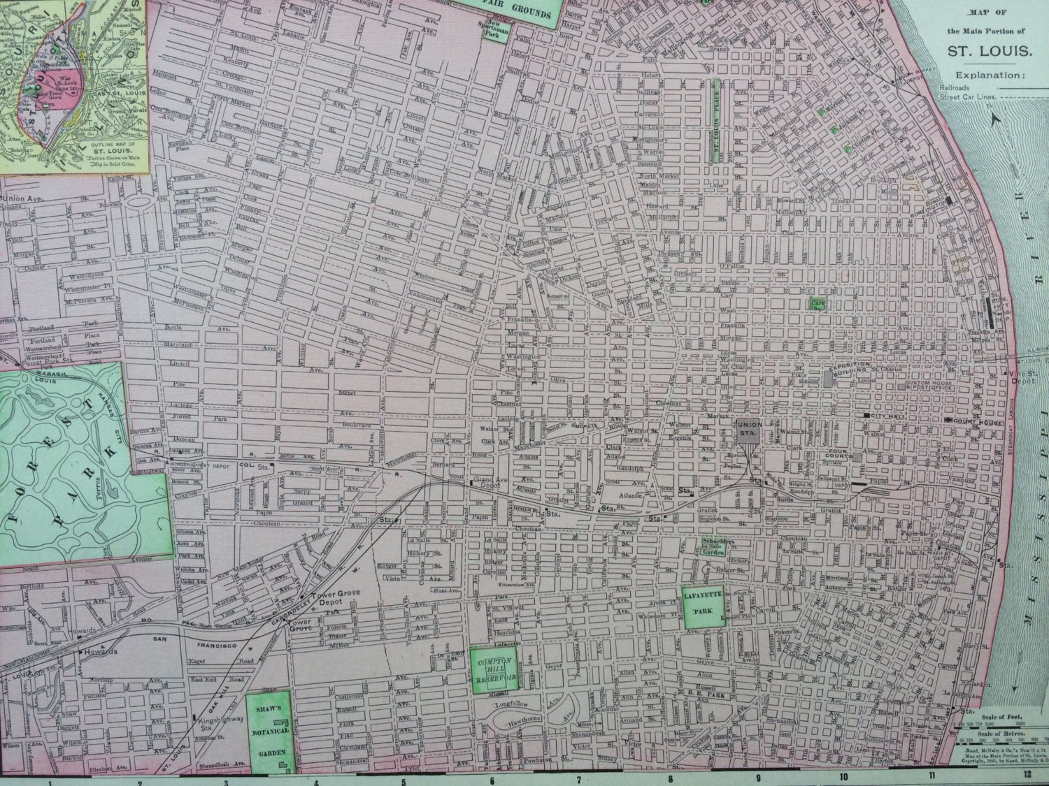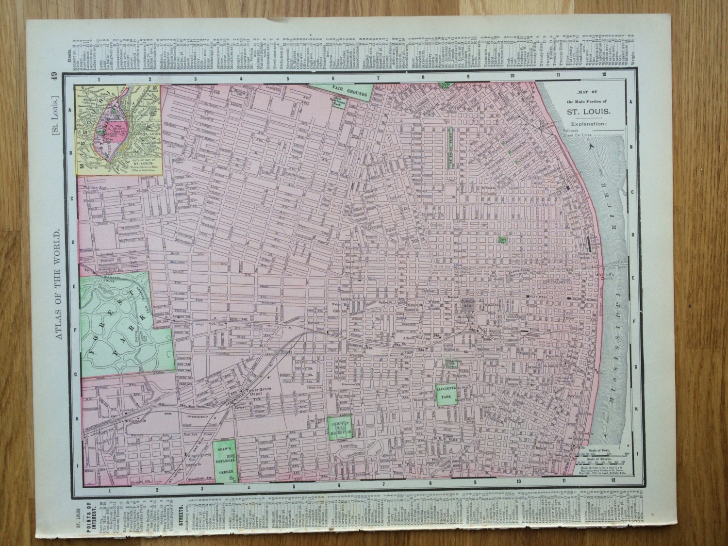 1898 ST LOUIS Original Antique City Plan Map, 11 x 14 inches, Rand McNally, Home Decor, Cartography, Geography, Vintage Decor