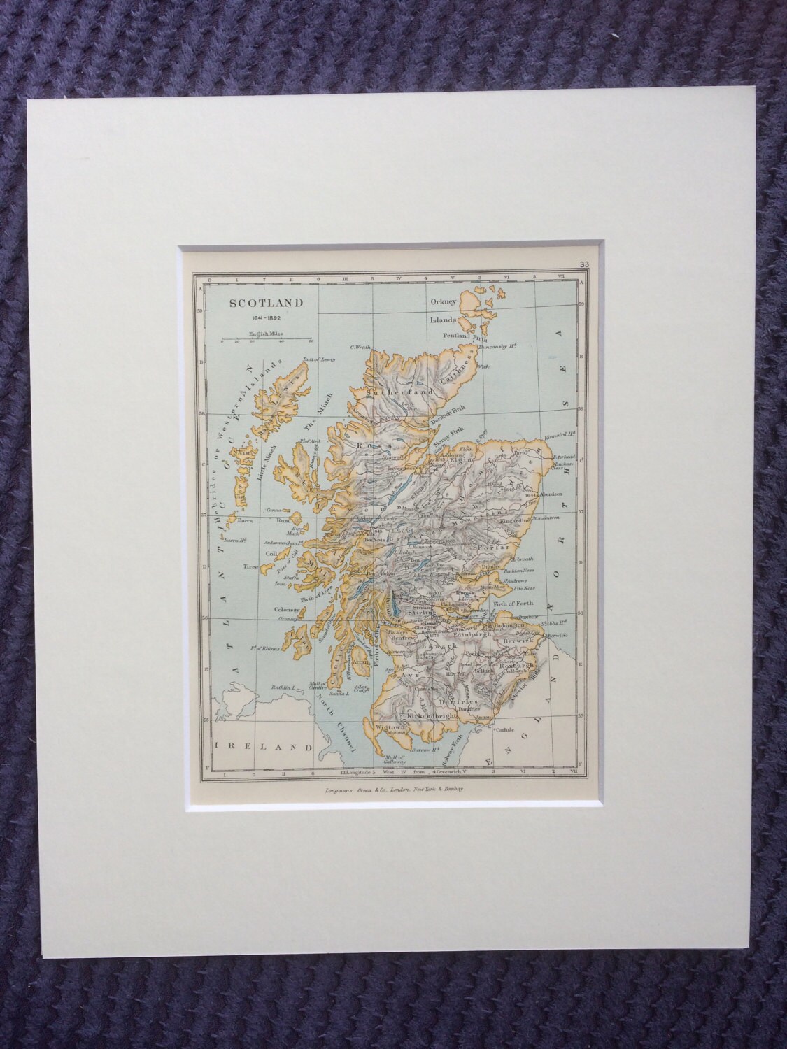 This map comes mounted and matted in antique white.