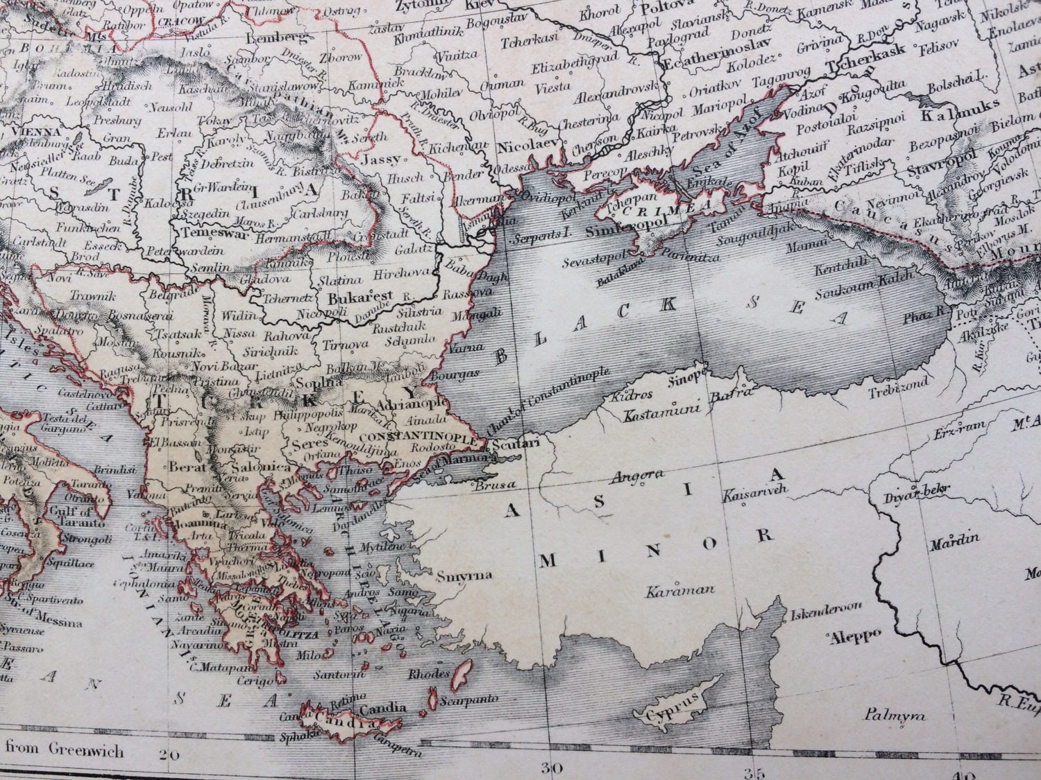 This is an original antique map from an A & C Black atlas published c. 1859, not a reproduction or modern copy. It is printed on nice thick paper and the colours have been well preserved.