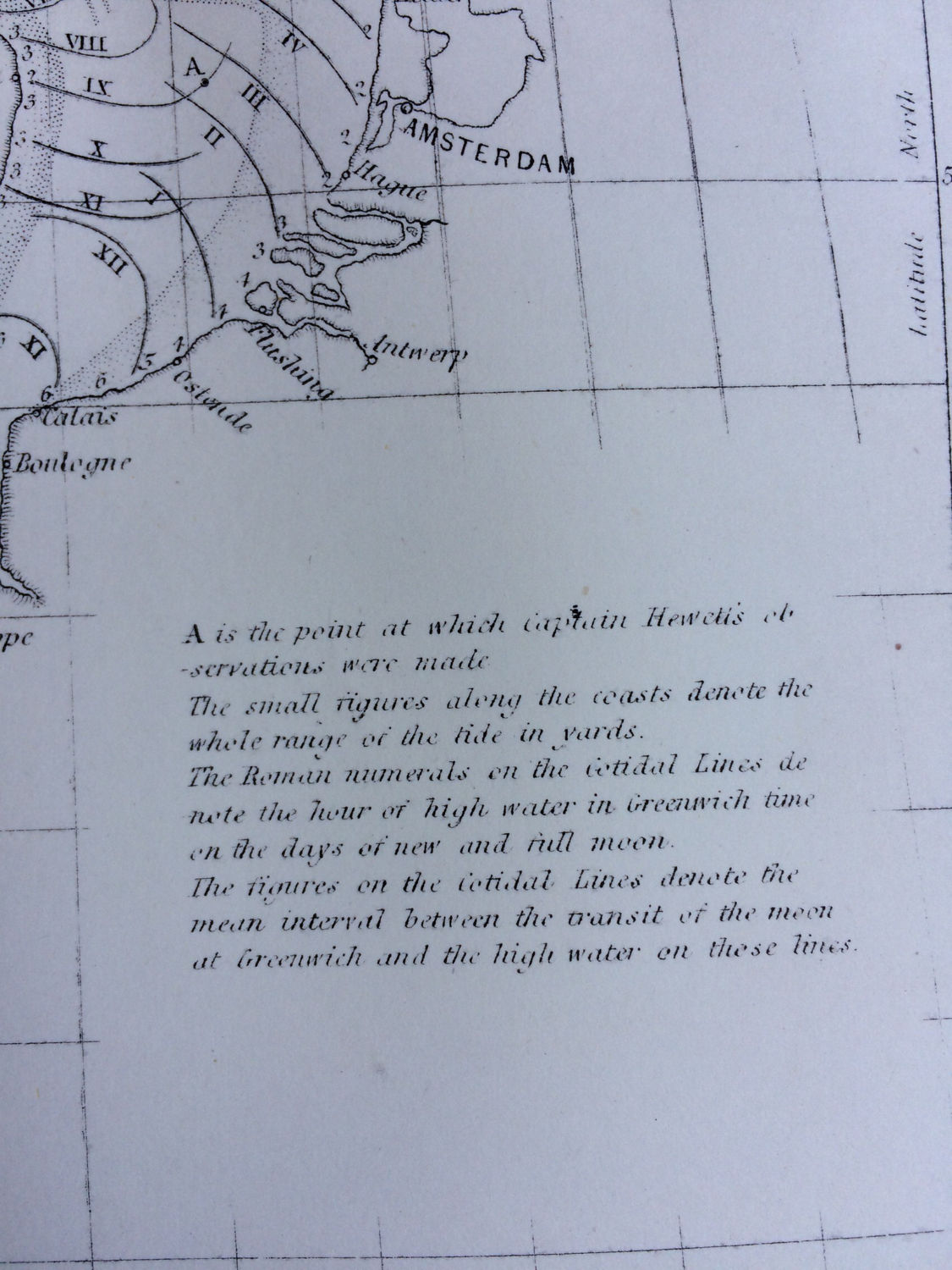This is a very interesting map showing a Chart of the British Islands and the North sea with co-tidal lines founded on Dr Whewell's Chart and the point at which Captain Hewell's observations were made.