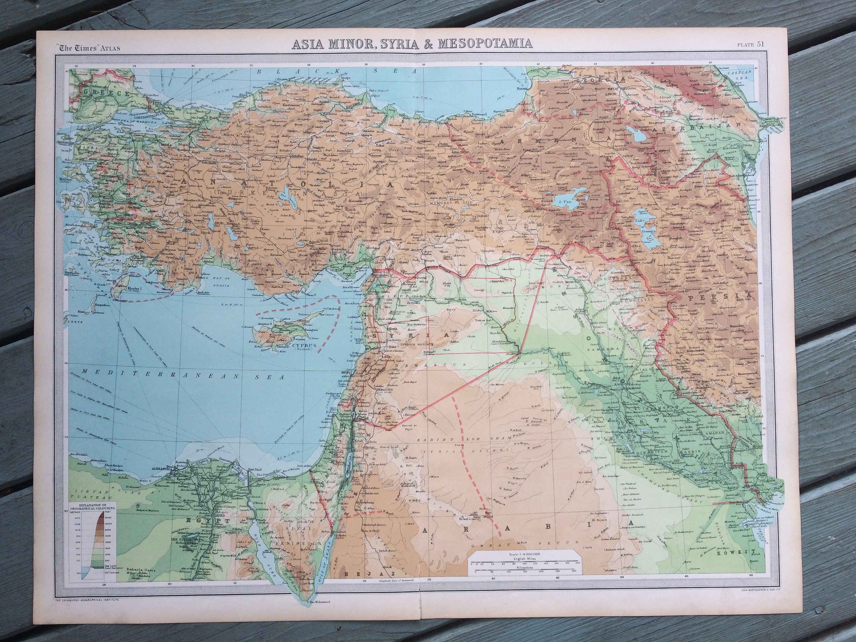 This is an original antique map from an edition of the Times Atlas published in 1922. The cartographer is J.G.Bartholomew, cartographer to the King of England. It is not a reproduction or modern copy. The paper of this map is thick, the colours well preserved and it contains a high level of detail.