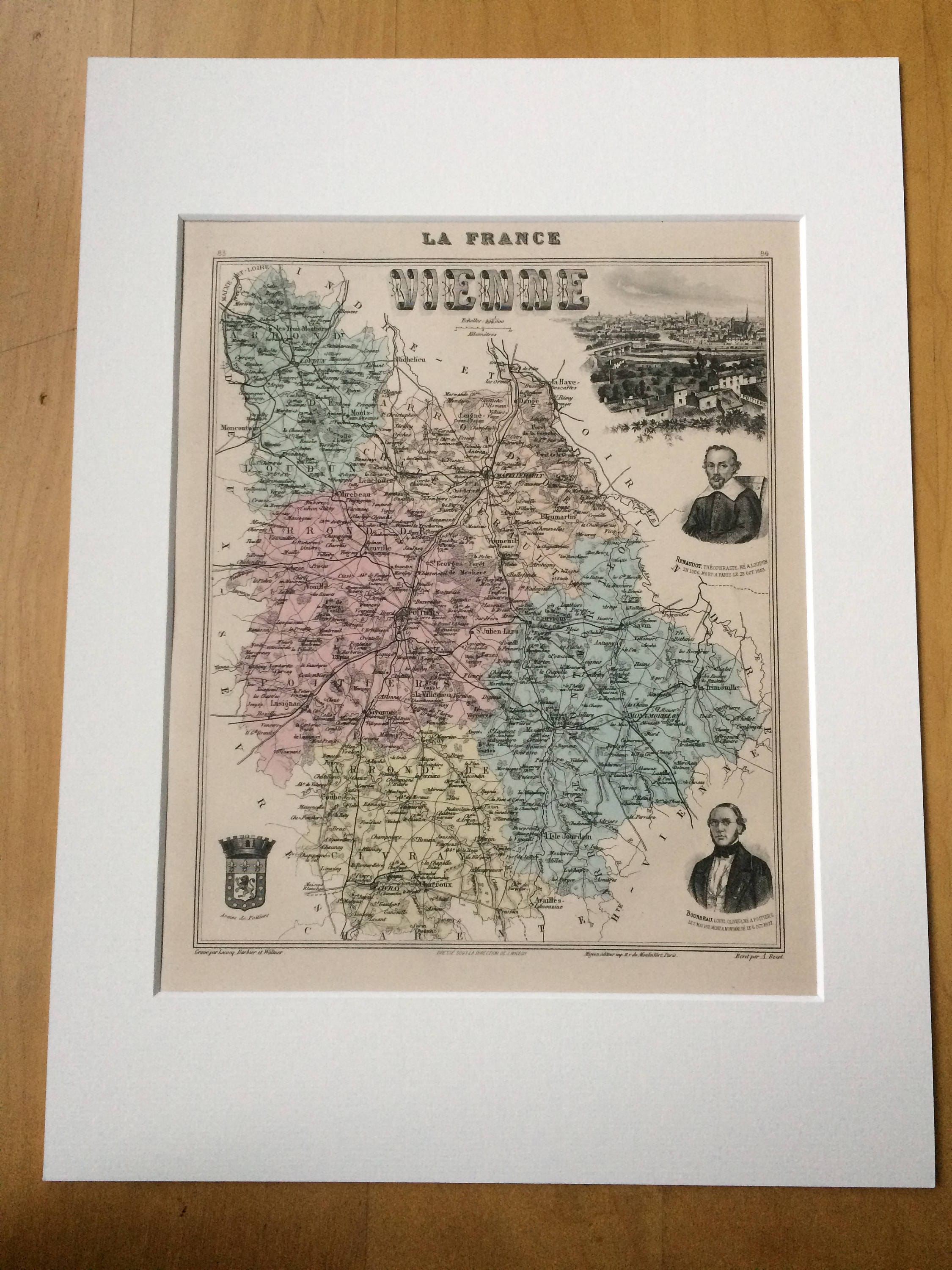 This map is available mounted, matted in antique white or black and is also available framed. We use archival matting methods so your map will be held in place with photo corners and will not be fixed to either the mat or the backing board.