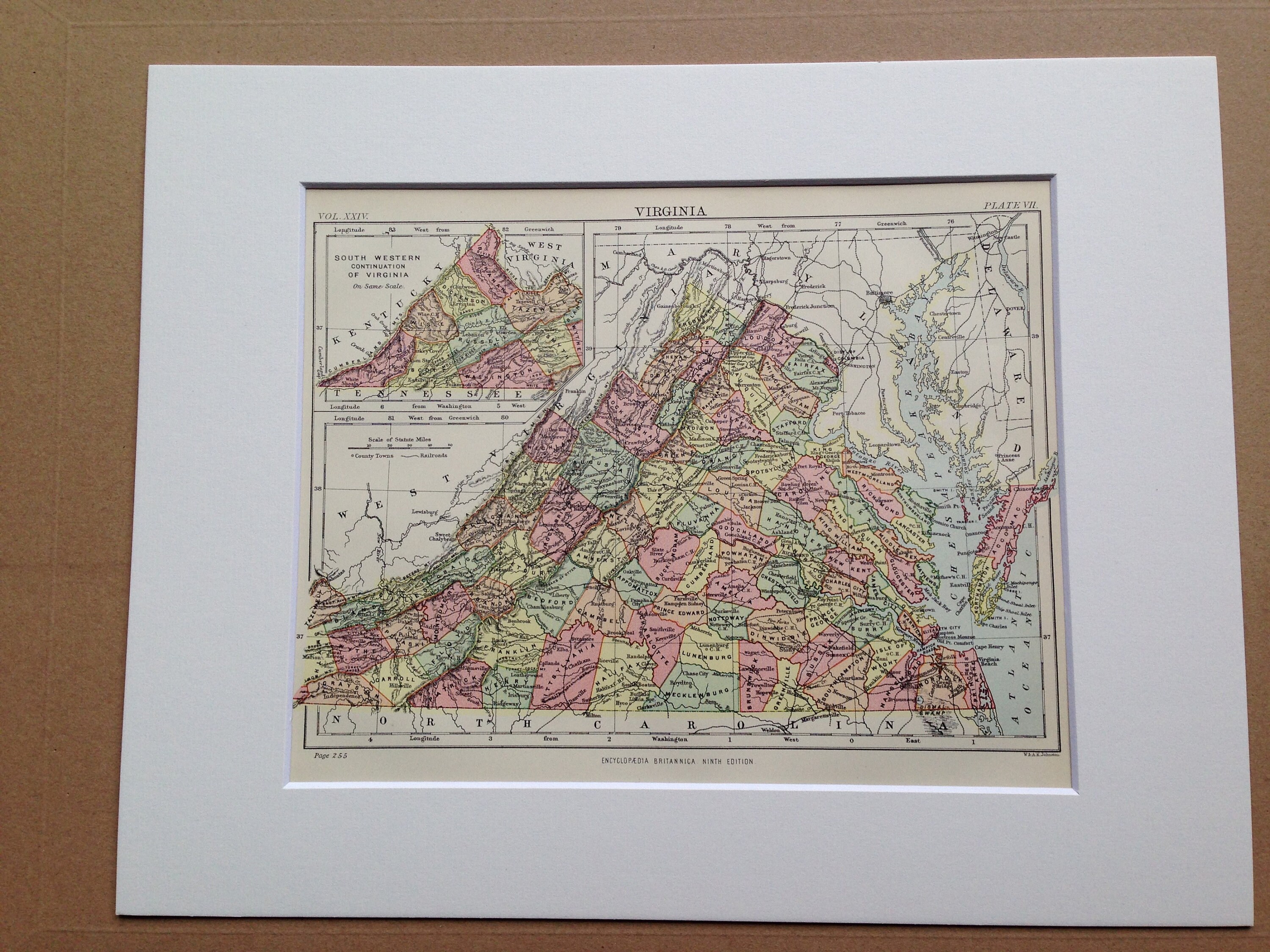 This map is available mounted, matted in antique white or black and is also available framed. We use archival matting methods so your map will be held in place with photo corners and will not be fixed to either the mat or the backing board.