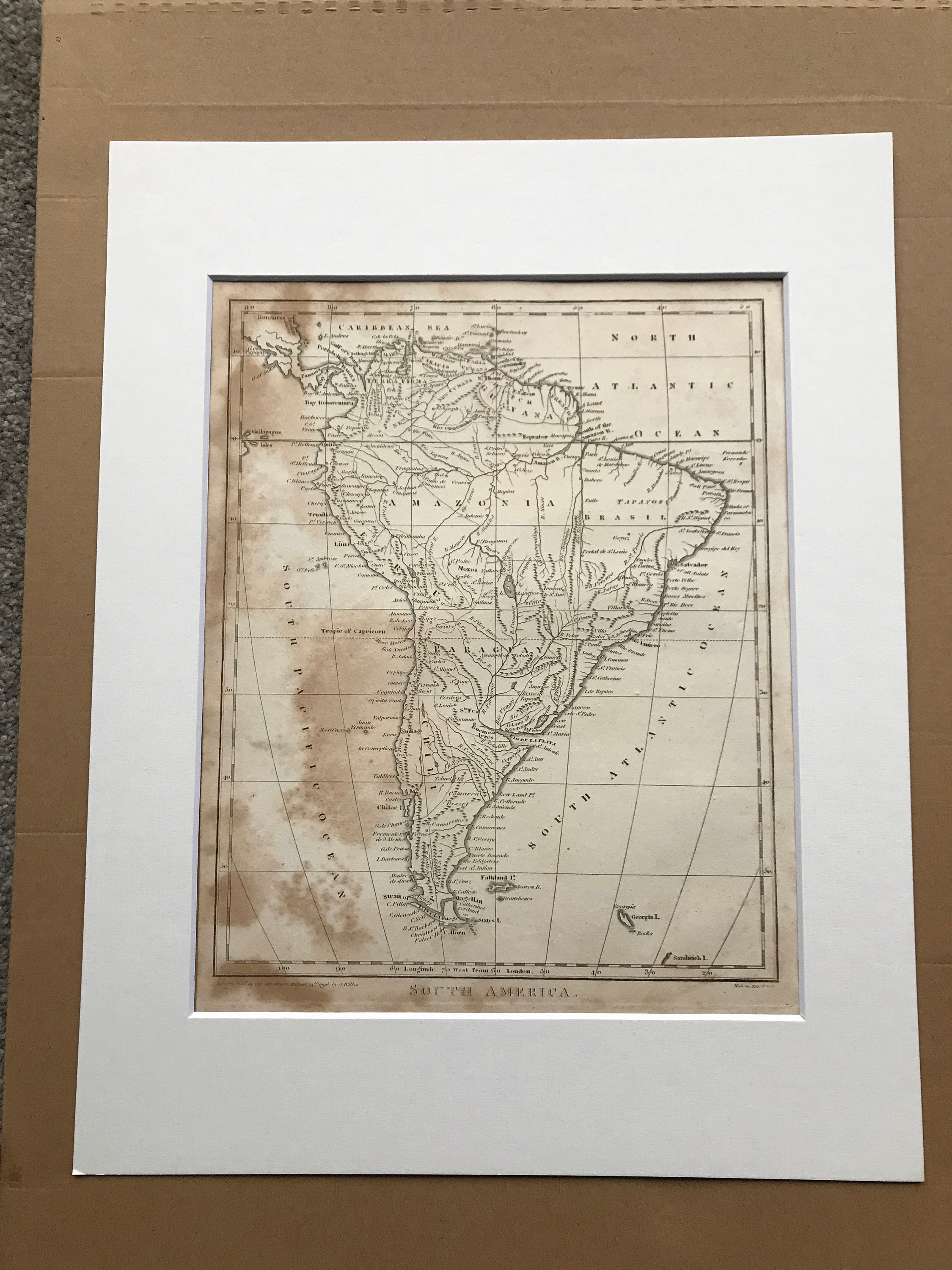 This map is available mounted, matted in antique white or black and is also available framed. We use archival matting methods so your map will be held in place with photo corners and will not be fixed to either the mat or the backing board.