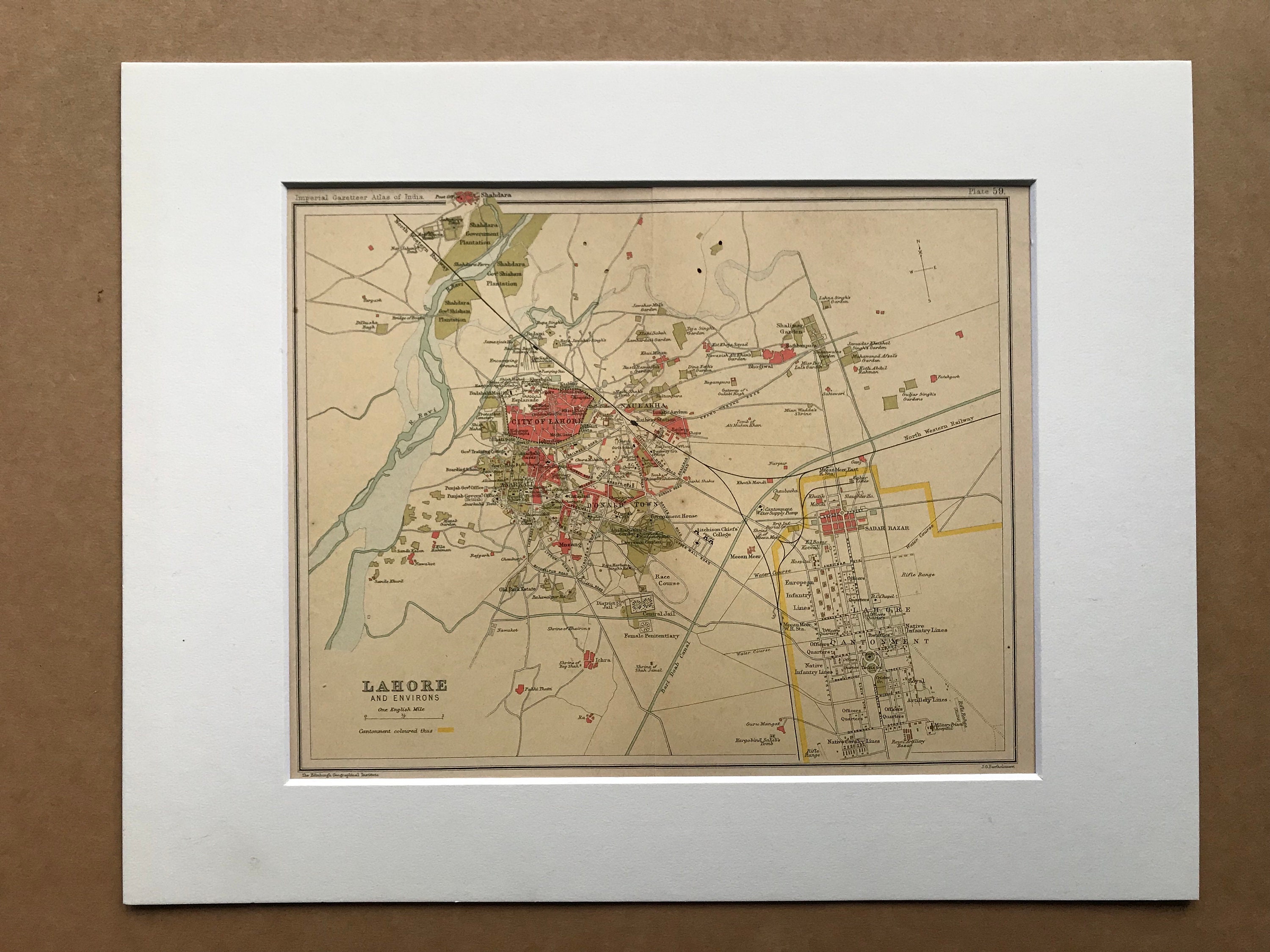 This map is available mounted, matted in antique white or black and is also available framed. We use archival matting methods so your map will be held in place with photo corners and will not be fixed to either the mat or the backing board.