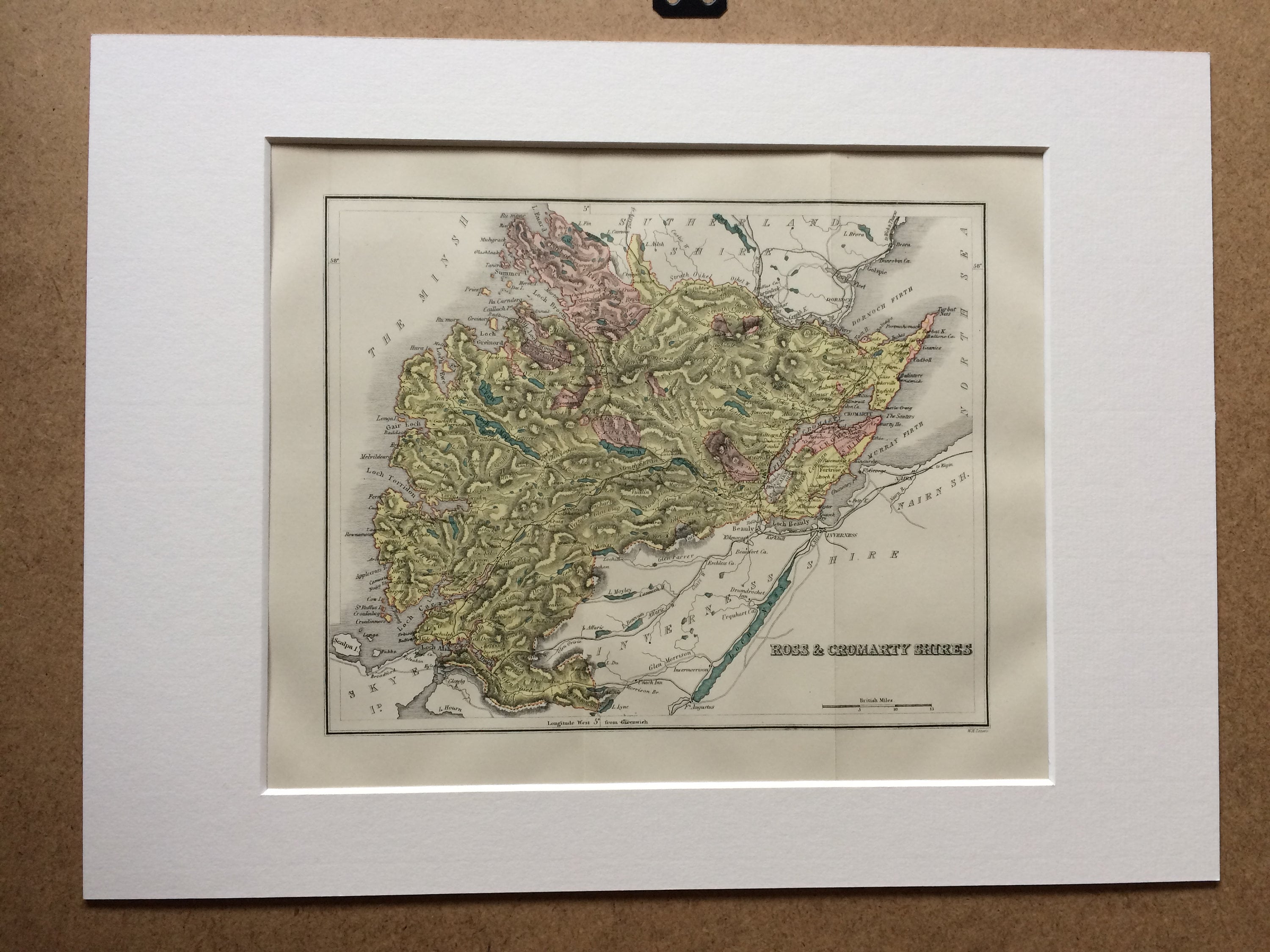 This map is available mounted and matted in antique white or black. We use archival matting methods so your map will be held in place with photo corners and will not be fixed to either the mat or the backing board.