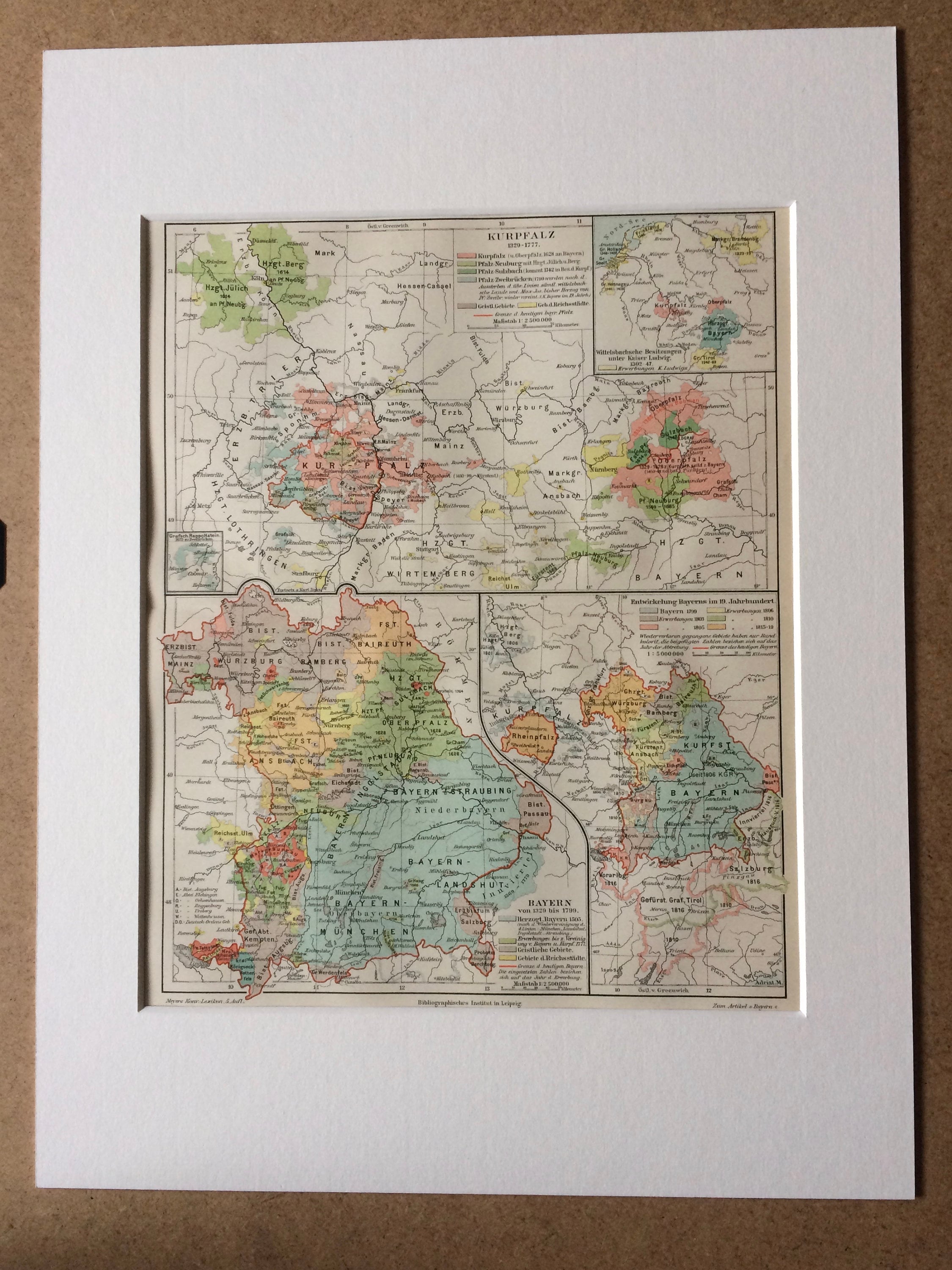 This map is available mounted, matted in antique white or black and is also available framed. We use archival matting methods so your map will be held in place with photo corners and will not be fixed to either the mat or the backing board.