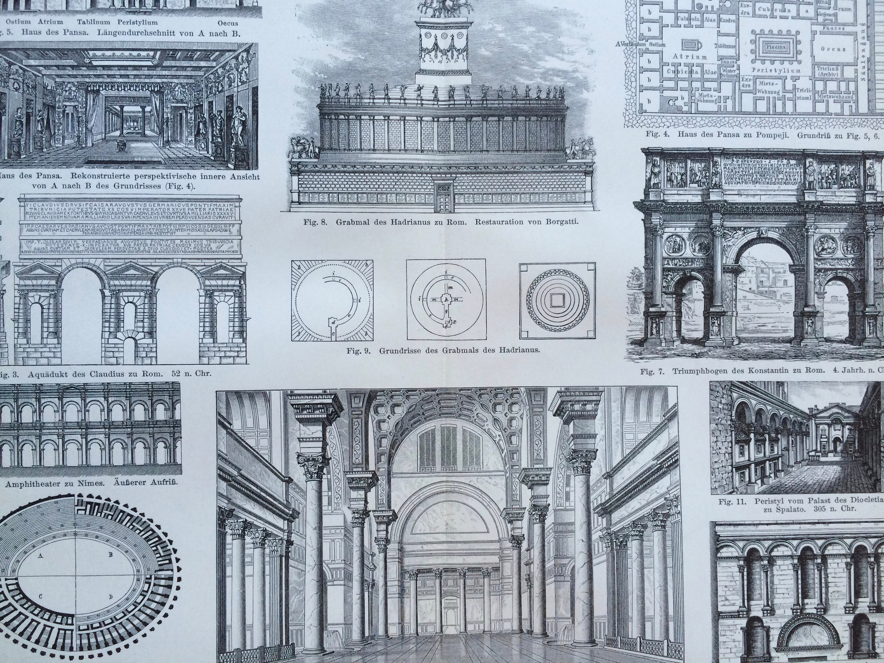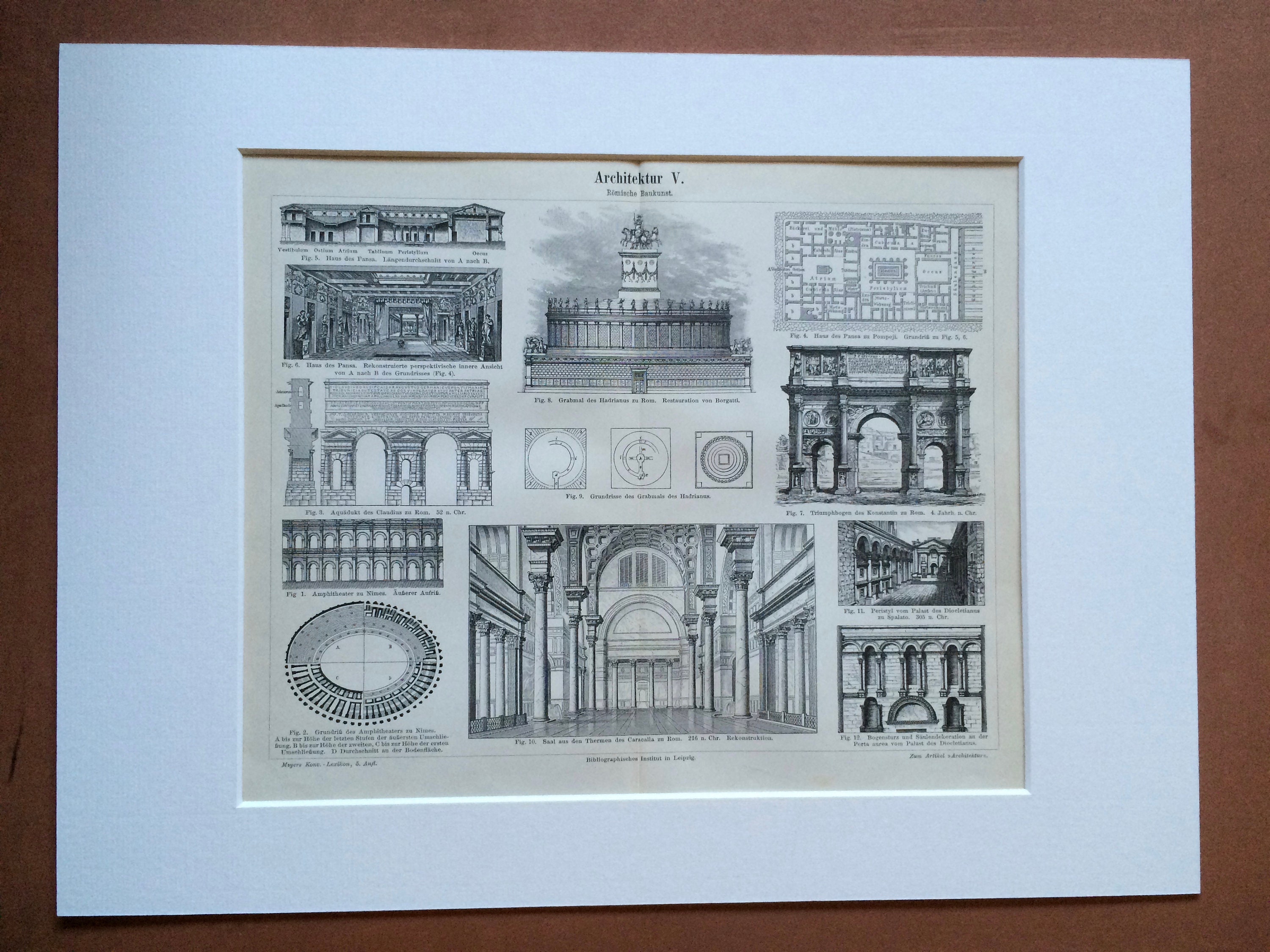 1897 Roman Architecture Large Original Antique Lithograph - Available Mounted and Matted - Gift for Architect - Vintage Decor