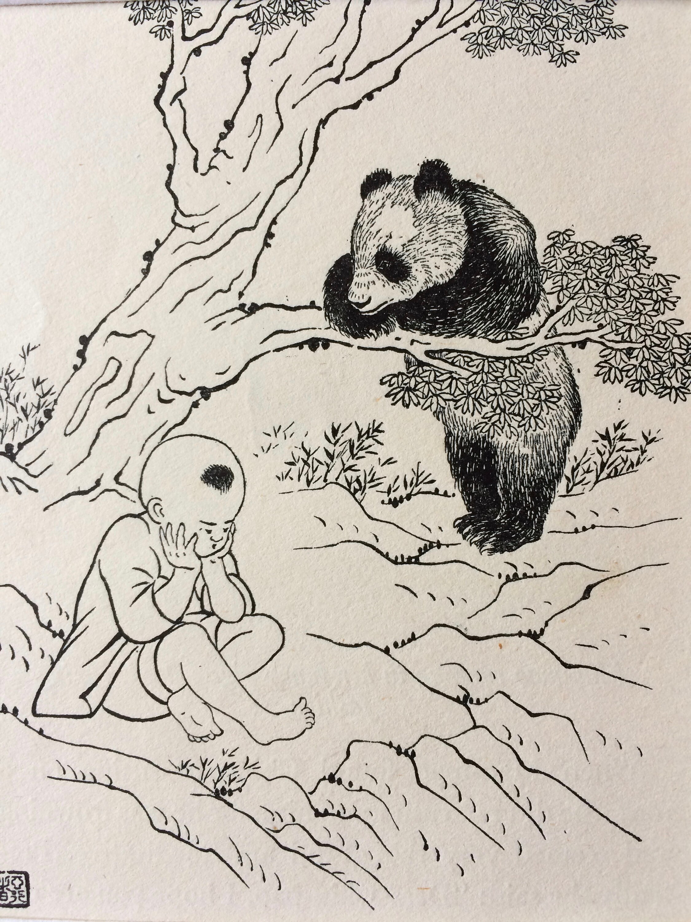 1942 Original Vintage Chiang Yee Illustration - Mounted and Matted - Available Framed - Chinese Children's Story - Giant Panda