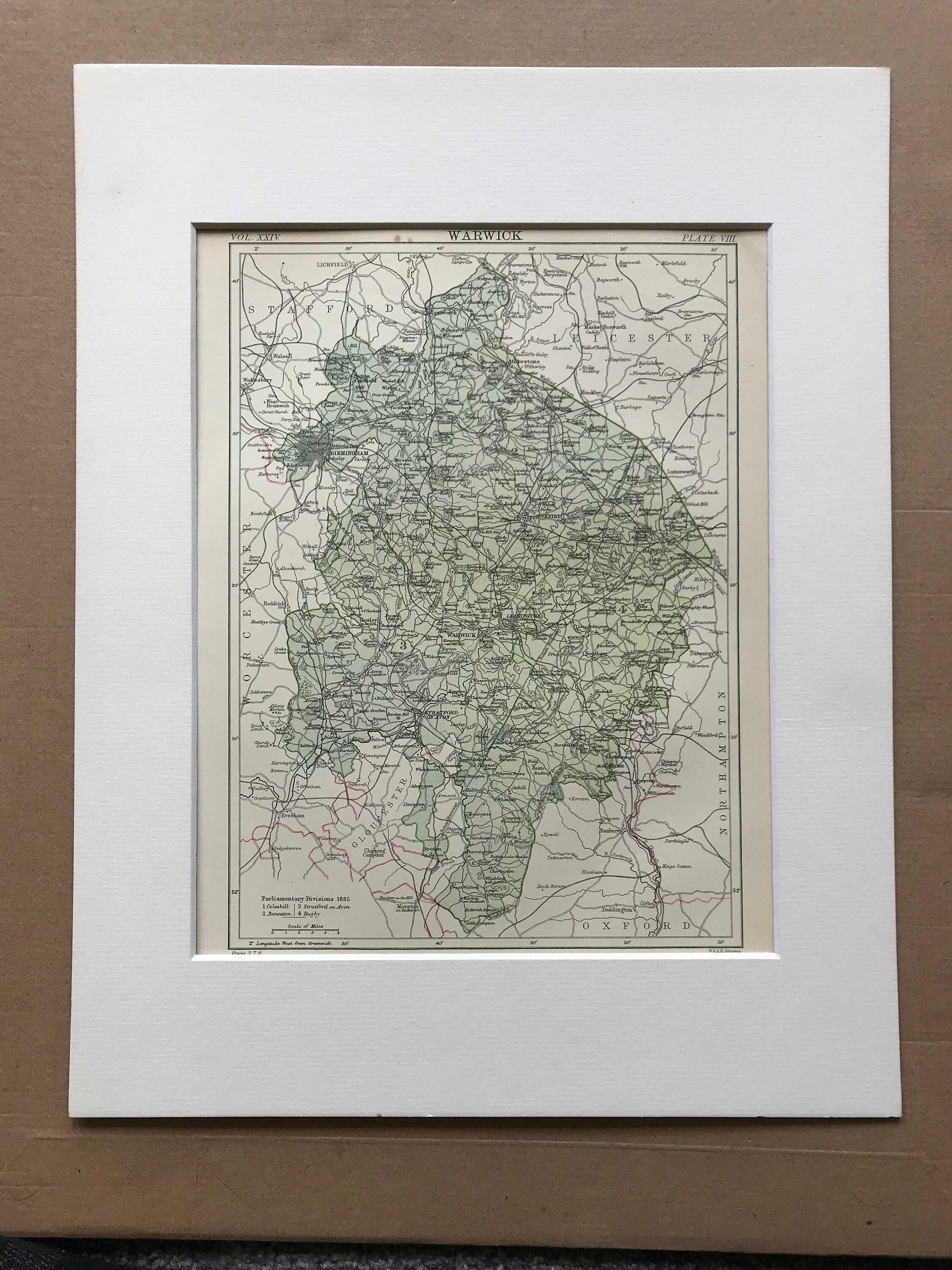 This map is available mounted, matted in antique white or black and is also available framed. We use archival matting methods so your map will be held in place with photo corners and will not be fixed to either the mat or the backing board.