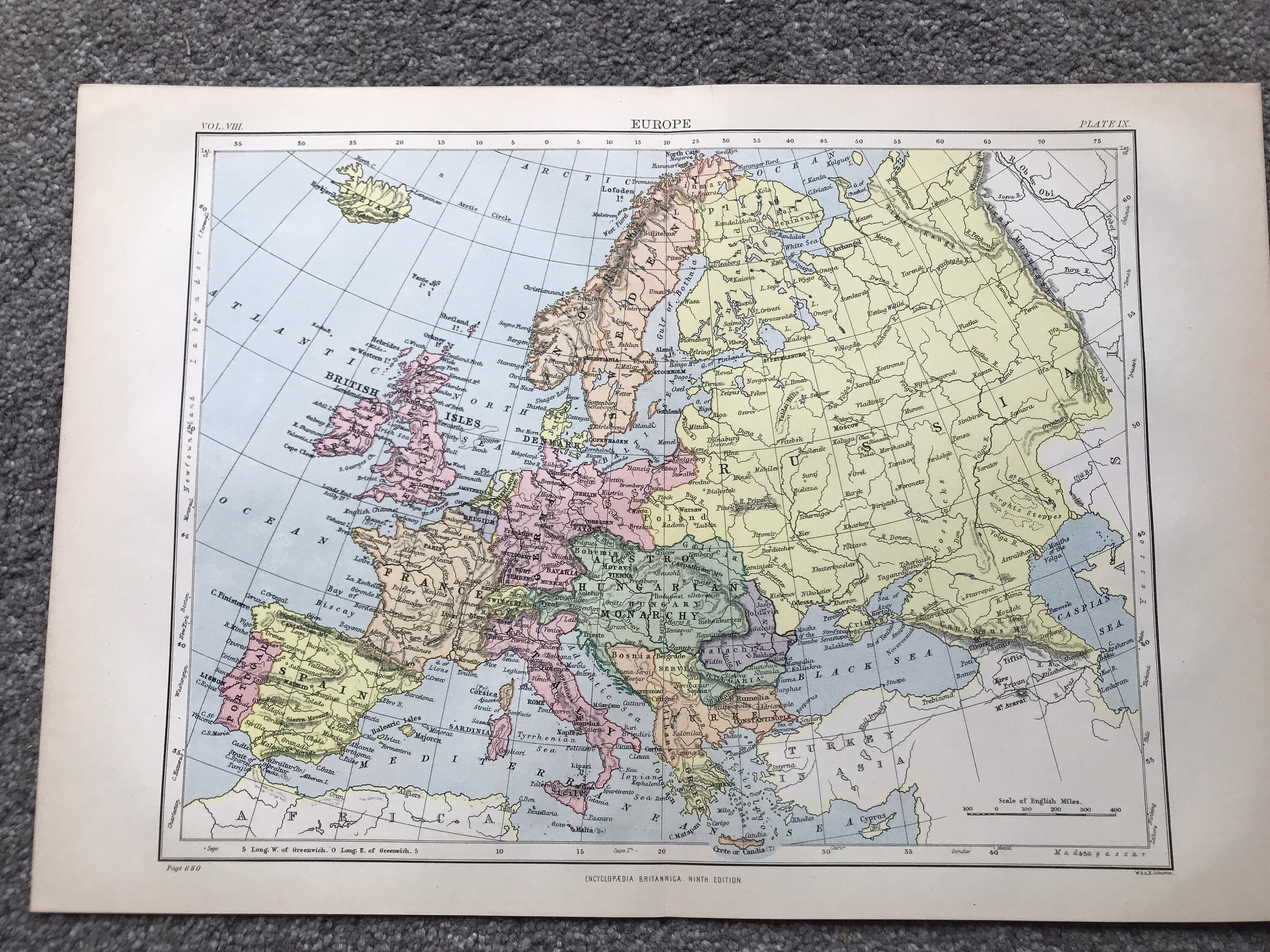 It is taken from the Encyclopaedia Britannica, Ninth Edition (1875-1889). Our maps are in excellent condition for their age and any tears or marks will always be clear from the photos and the price will be reduced accordingly.