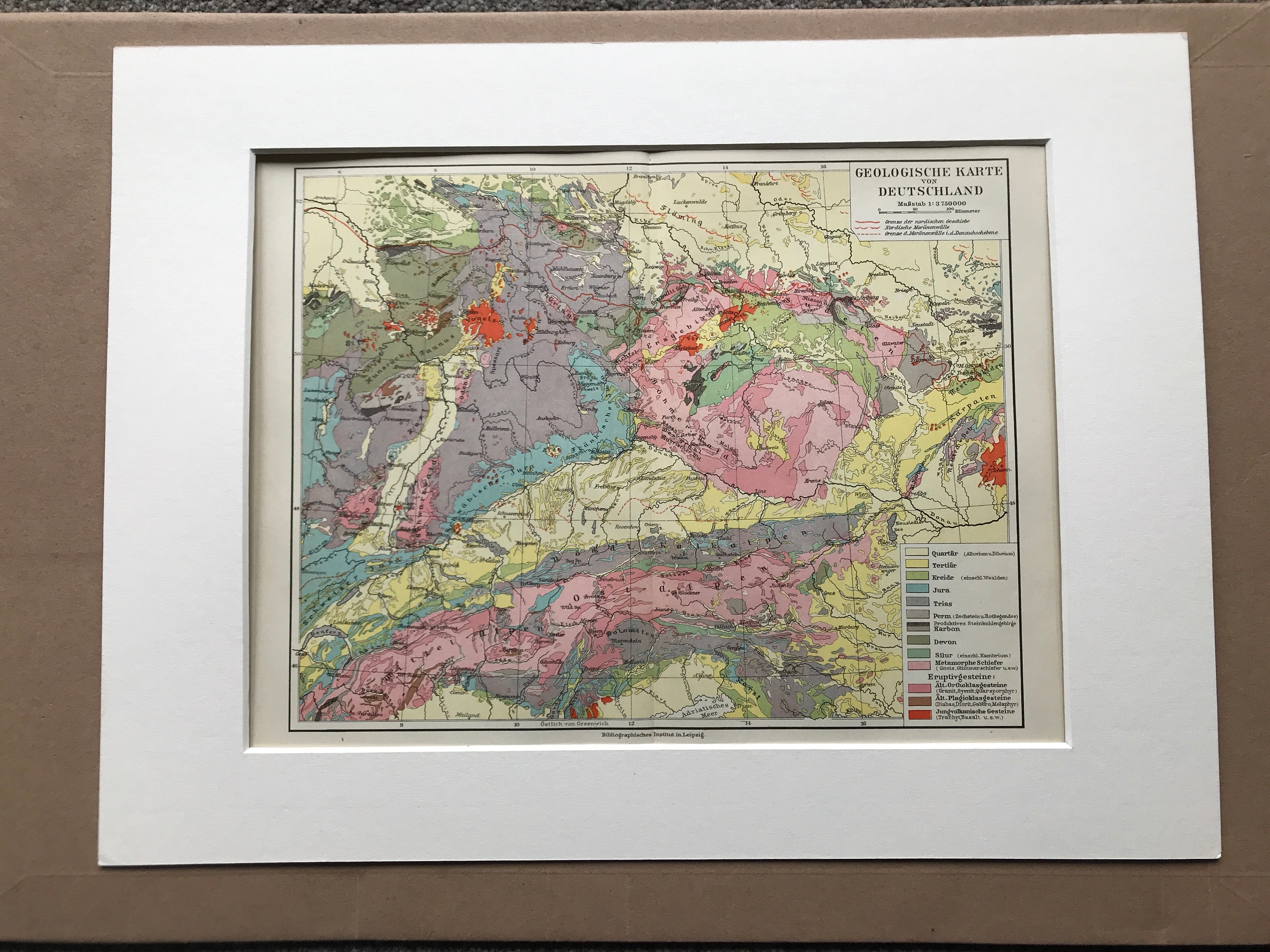 This map is available mounted and matted in black or antique white. We use archival matting methods so your map will be held in place with photo corners and will not be fixed to either the mat or the backing board.