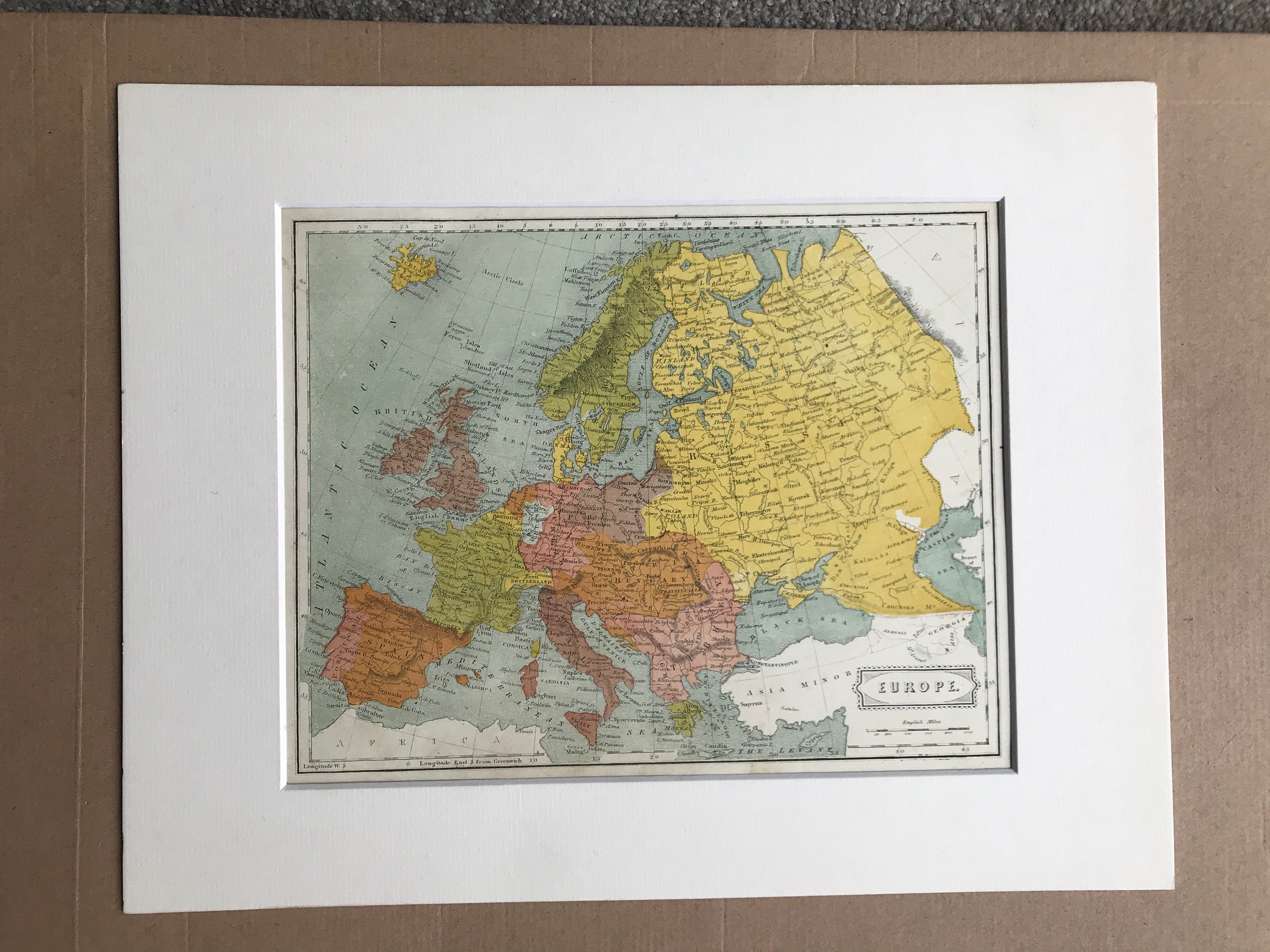 This map comes mounted, matted in antique white or black and is also available framed. We use archival matting methods so your map will be held in place with photo corners and will not be fixed to either the mat or the backing board.