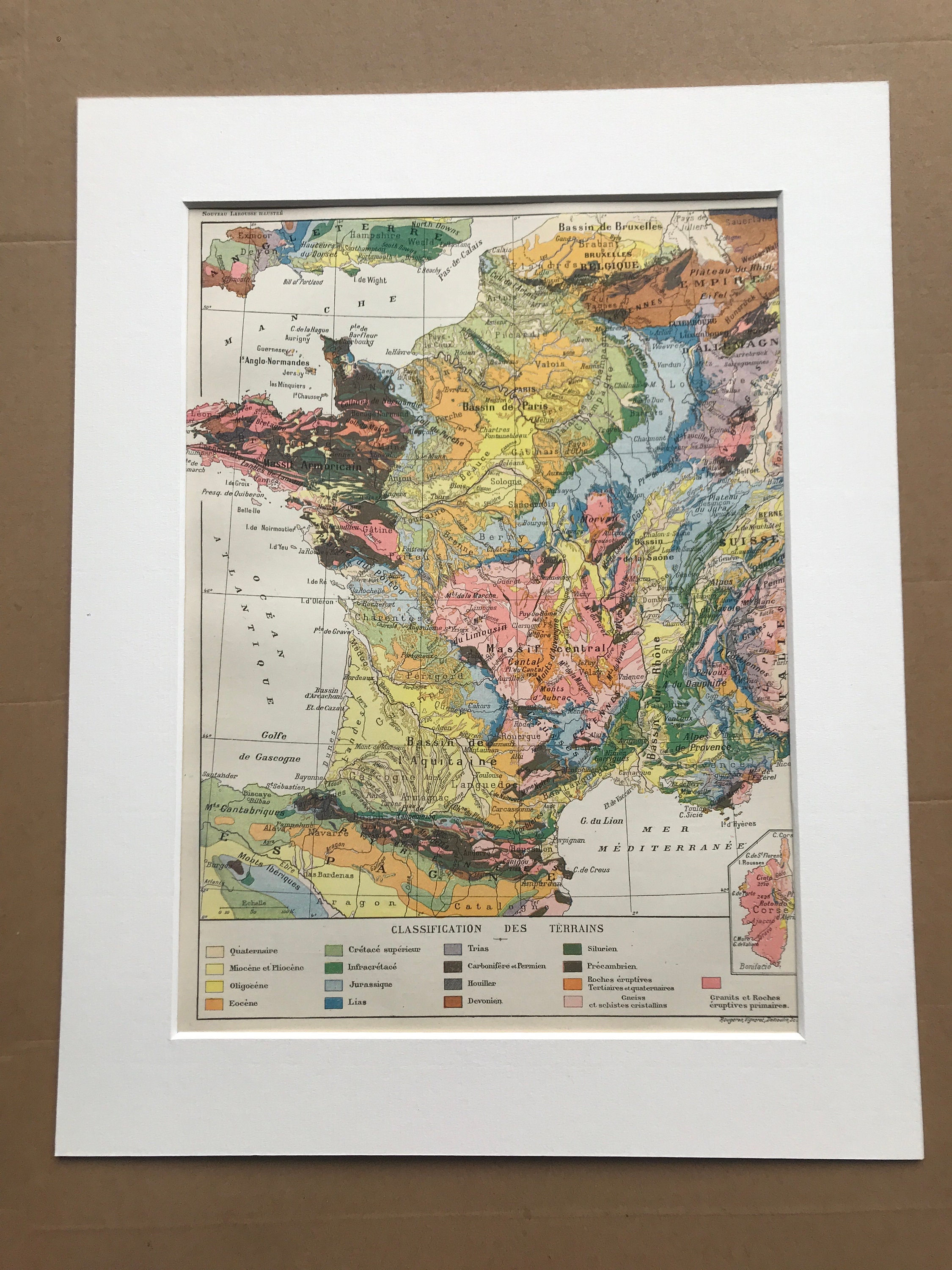 This map comes mounted, matted in antique white or black and is also available framed. We use archival matting methods so the map will be held in place with photo corners and will not be fixed to either the mat or the backing board.