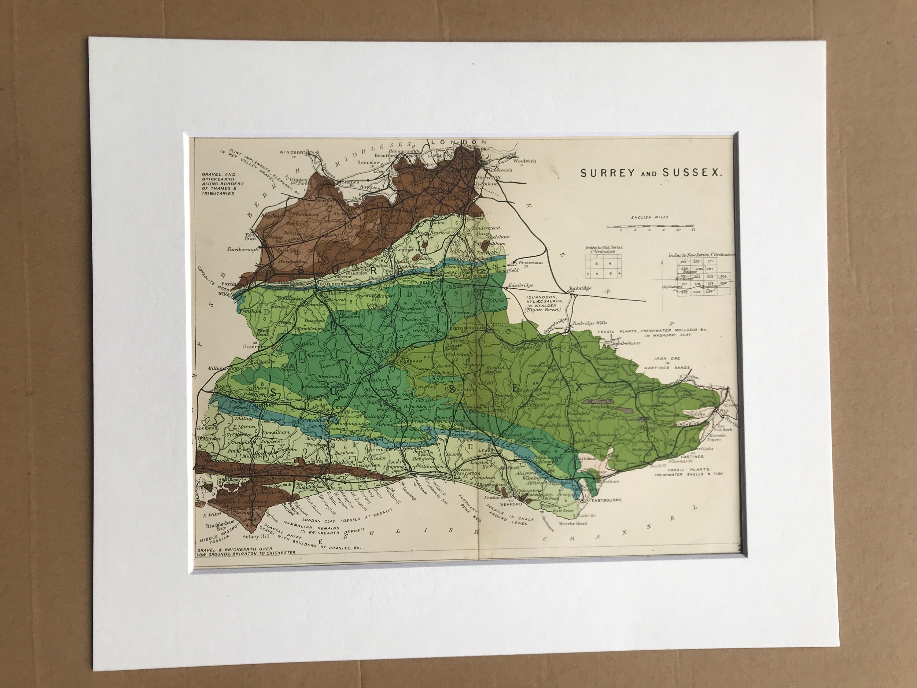 This map is available mounted, matted in antique white or black and is also available framed. We use archival matting methods so your map will be held in place with photo corners and will not be fixed to either the mat or the backing board.