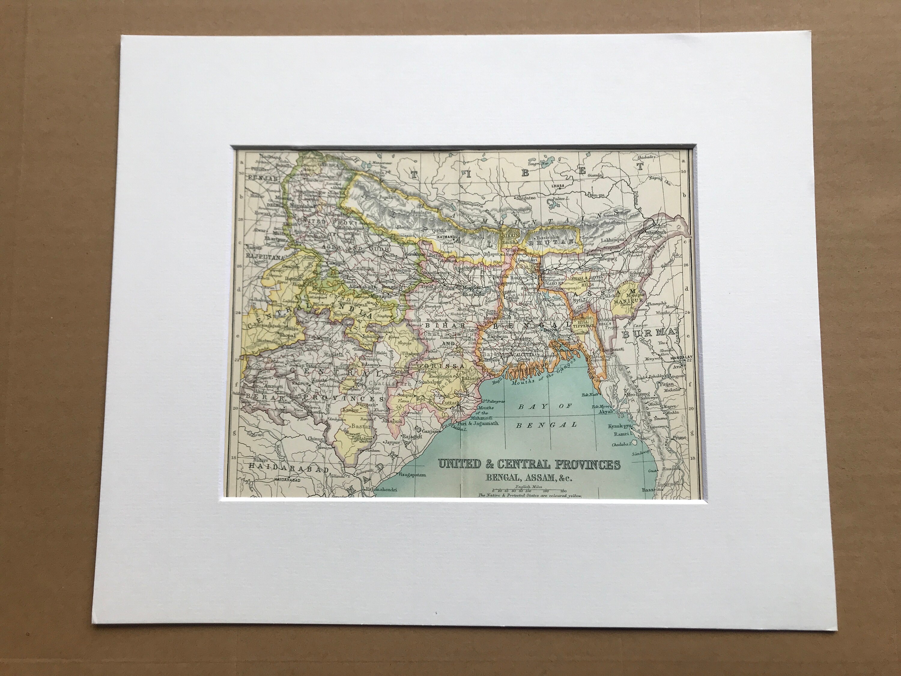 This map comes mounted, matted in antique white or black and is also available framed. We use archival matting methods so your map will be held in place with photo corners and will not be fixed to either the mat or the backing board.