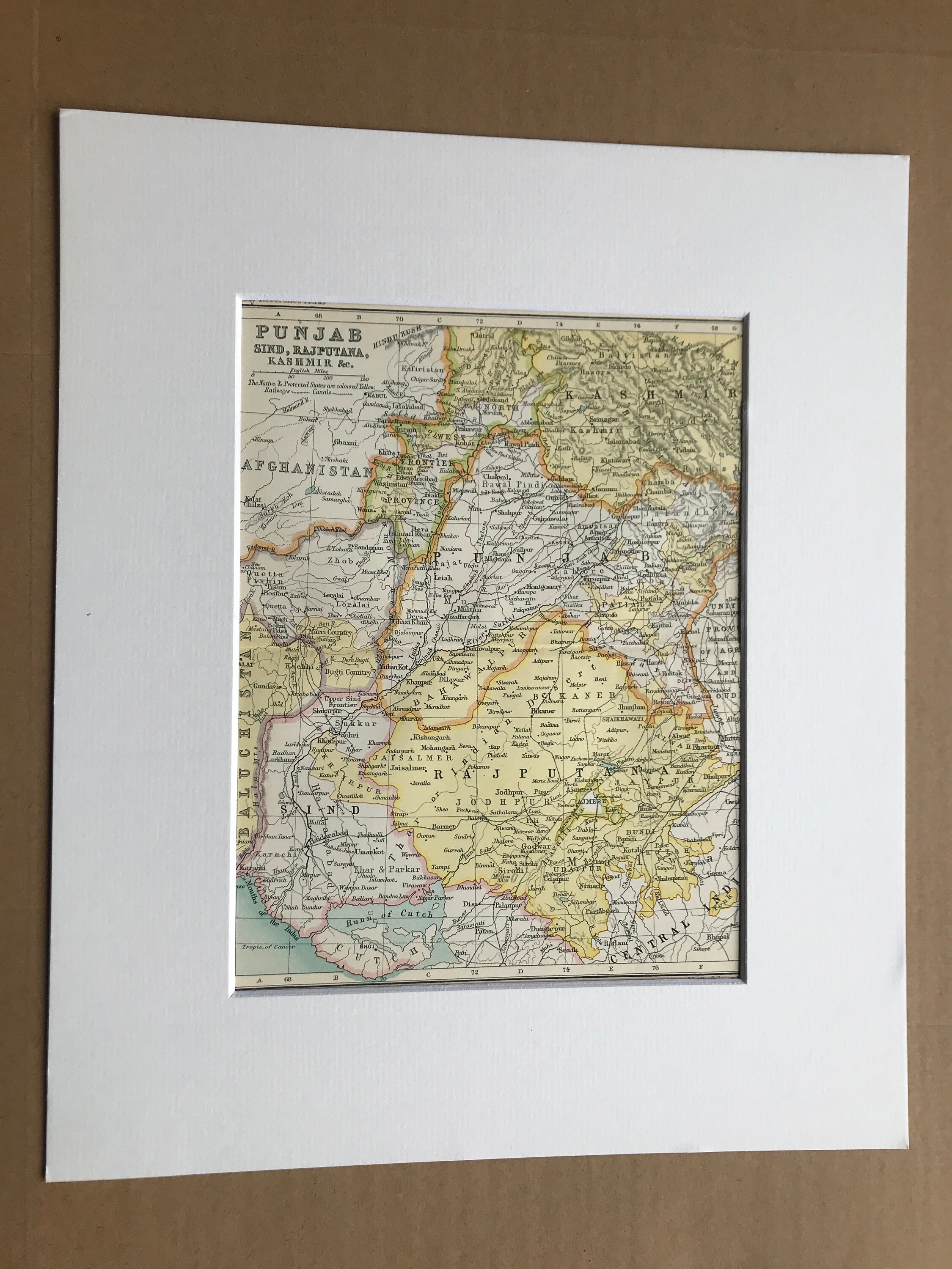 This map comes mounted, matted in antique white or black and is also available framed. We use archival matting methods so your map will be held in place with photo corners and will not be fixed to either the mat or the backing board.