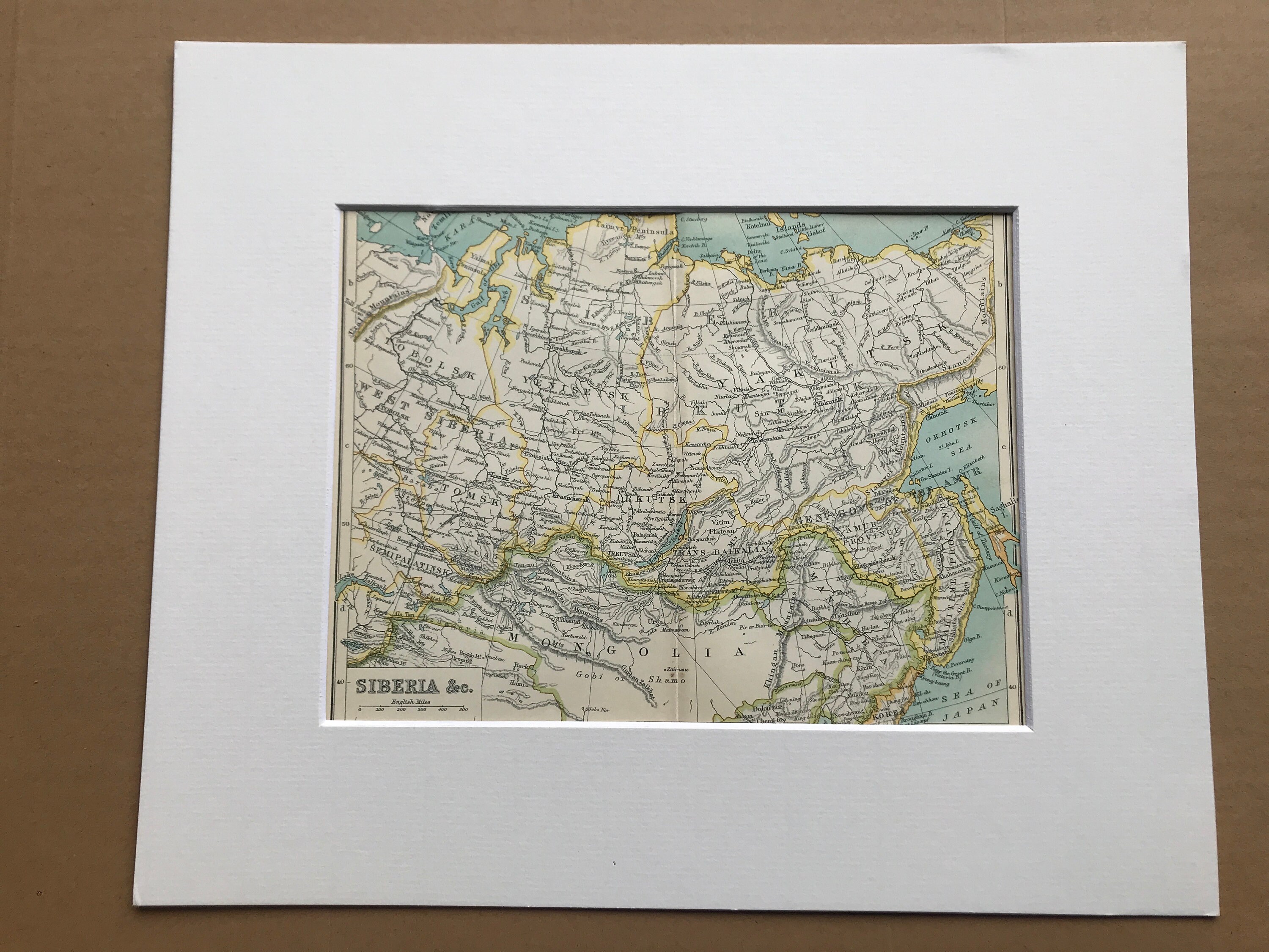 This map comes mounted, matted in antique white or black and is also available framed. We use archival matting methods so your map will be held in place with photo corners and will not be fixed to either the mat or the backing board.