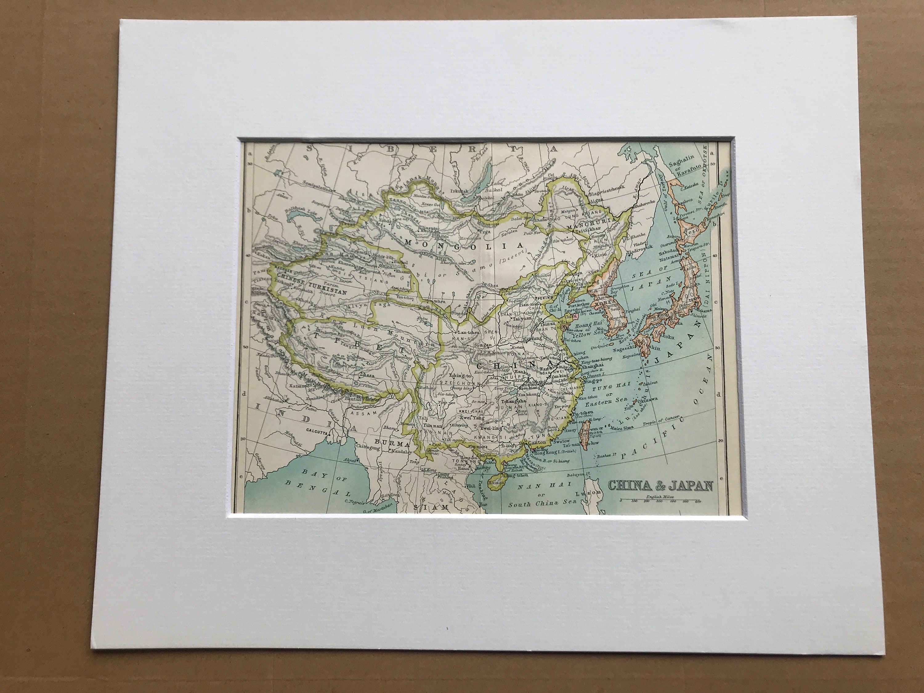 This map comes mounted, matted in antique white or black and is also available framed. We use archival matting methods so your map will be held in place with photo corners and will not be fixed to either the mat or the backing board.
